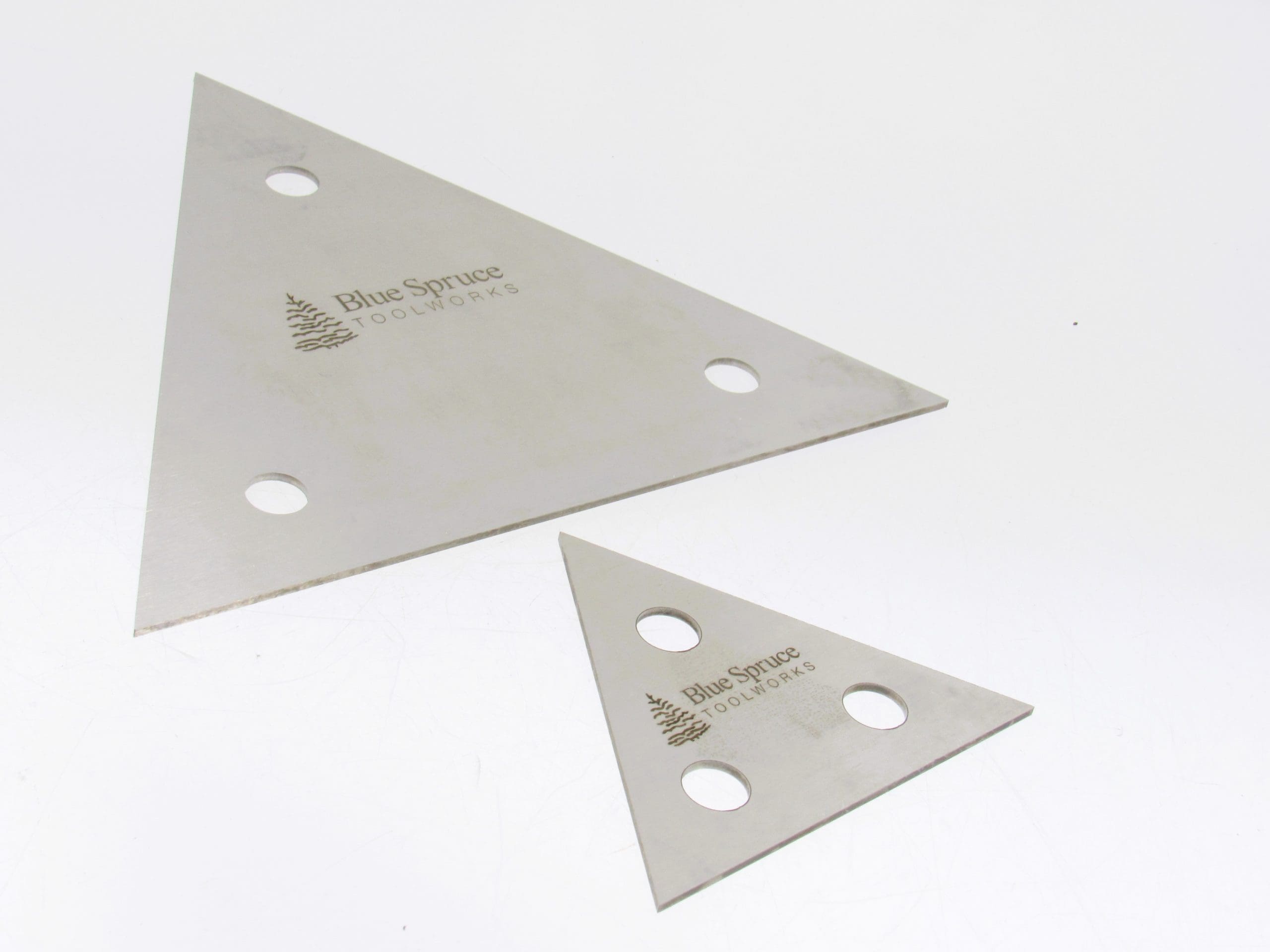 Blue Spruce Triangular Card Scrapers are perfect for digging into those corners and tight spaces. Weโve implemented all of the same great features of our rectangular scrapers, but in an option that gives you the flexibility to get into finished casework, clean up glue squeeze-out and hug shoulder lines, all with ease. These scrapers have an extra-thick .062โ thick profileโthatโs up to twice as thick as other scrapers on the market. The blades resist flexing and will result in a flat surface free of divots and scallops. That profile means this is all achieved with less technique, less grip strength, and less resharpening.ย ย
