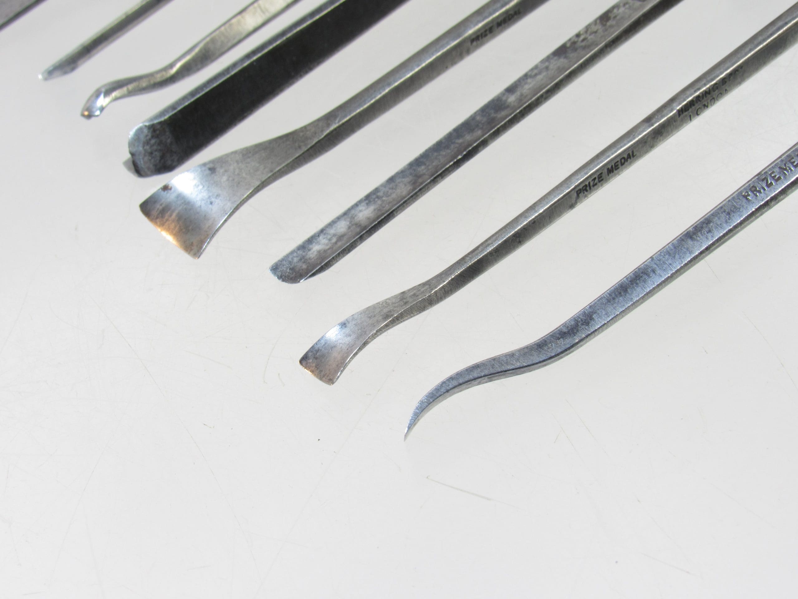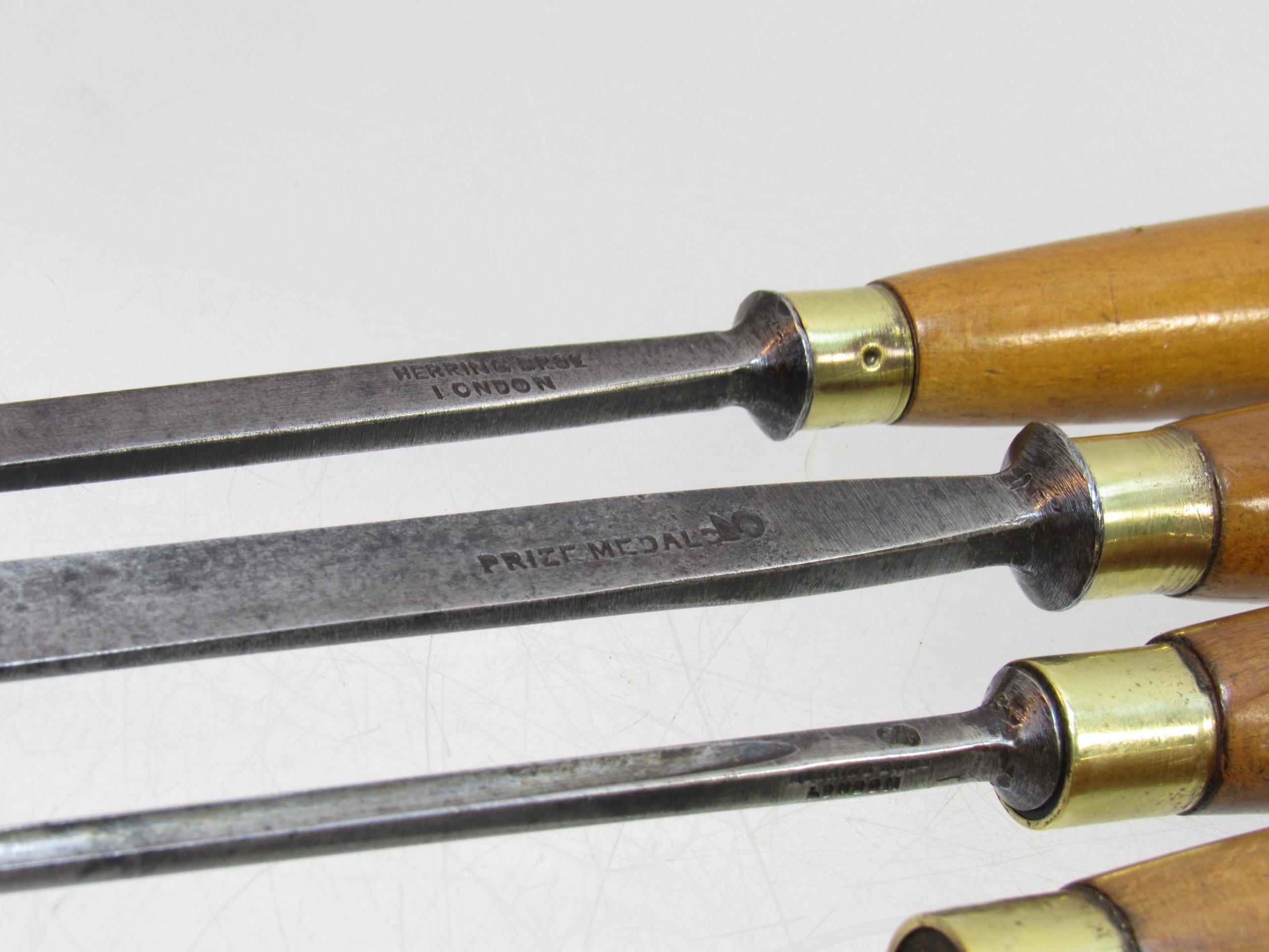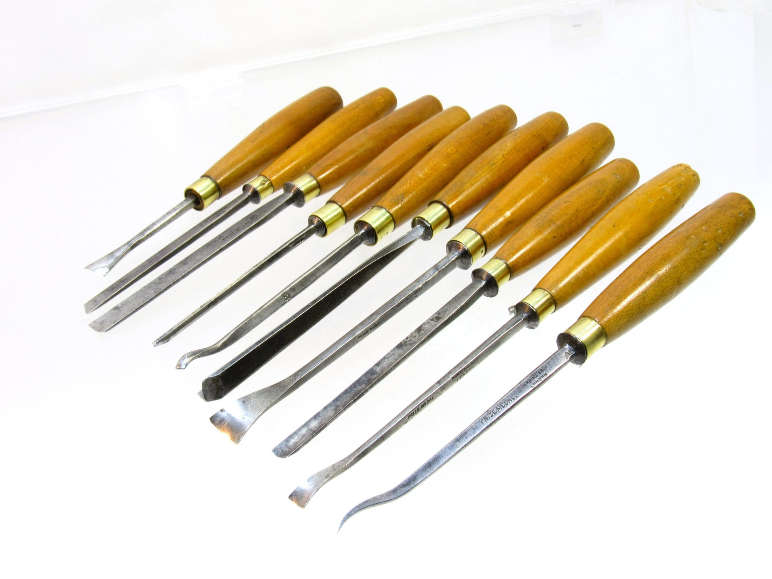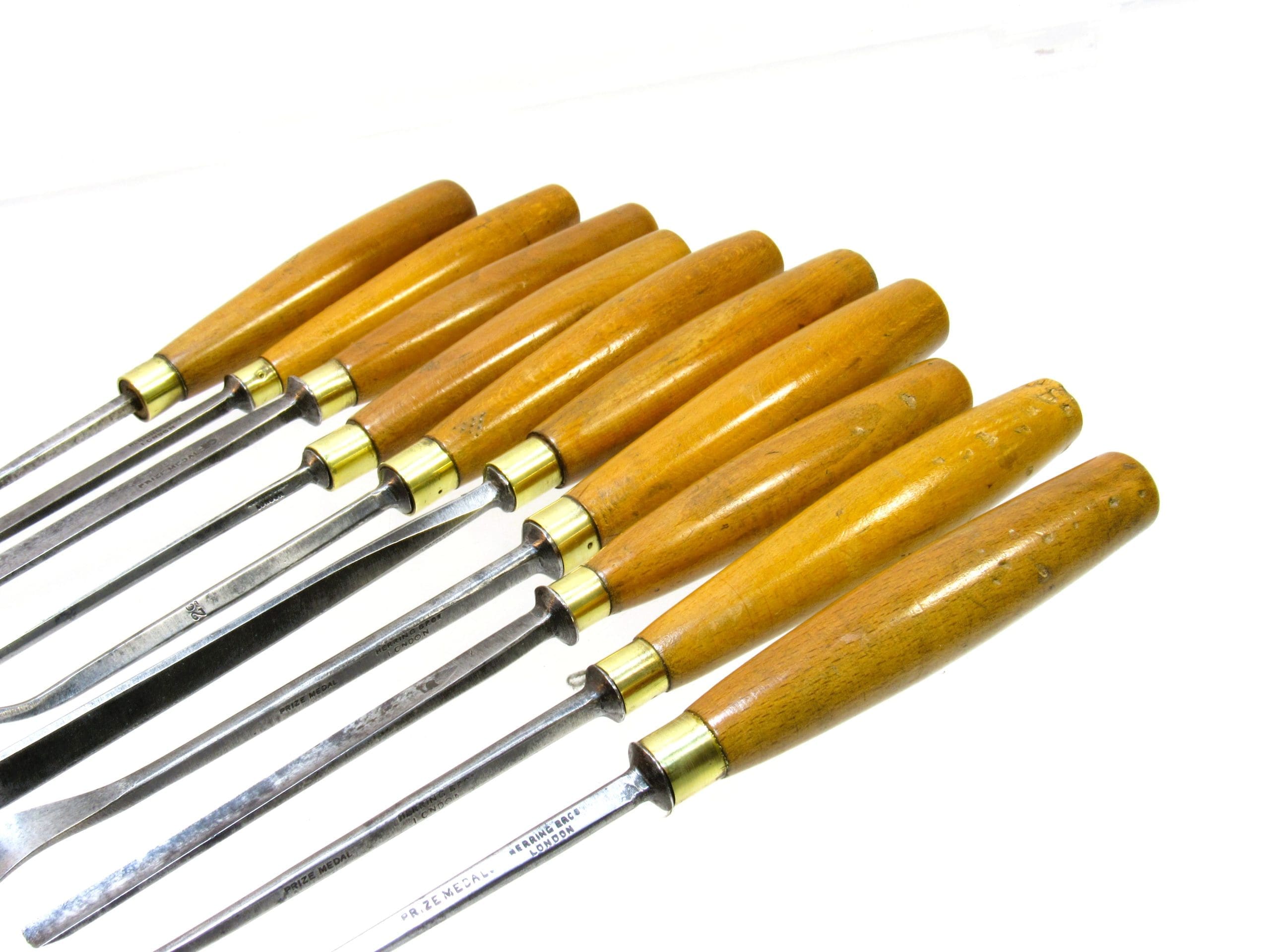 A superb set of Herring Brothers Prize Medal carving chisels, known for their exceptional craftsmanship and precision.