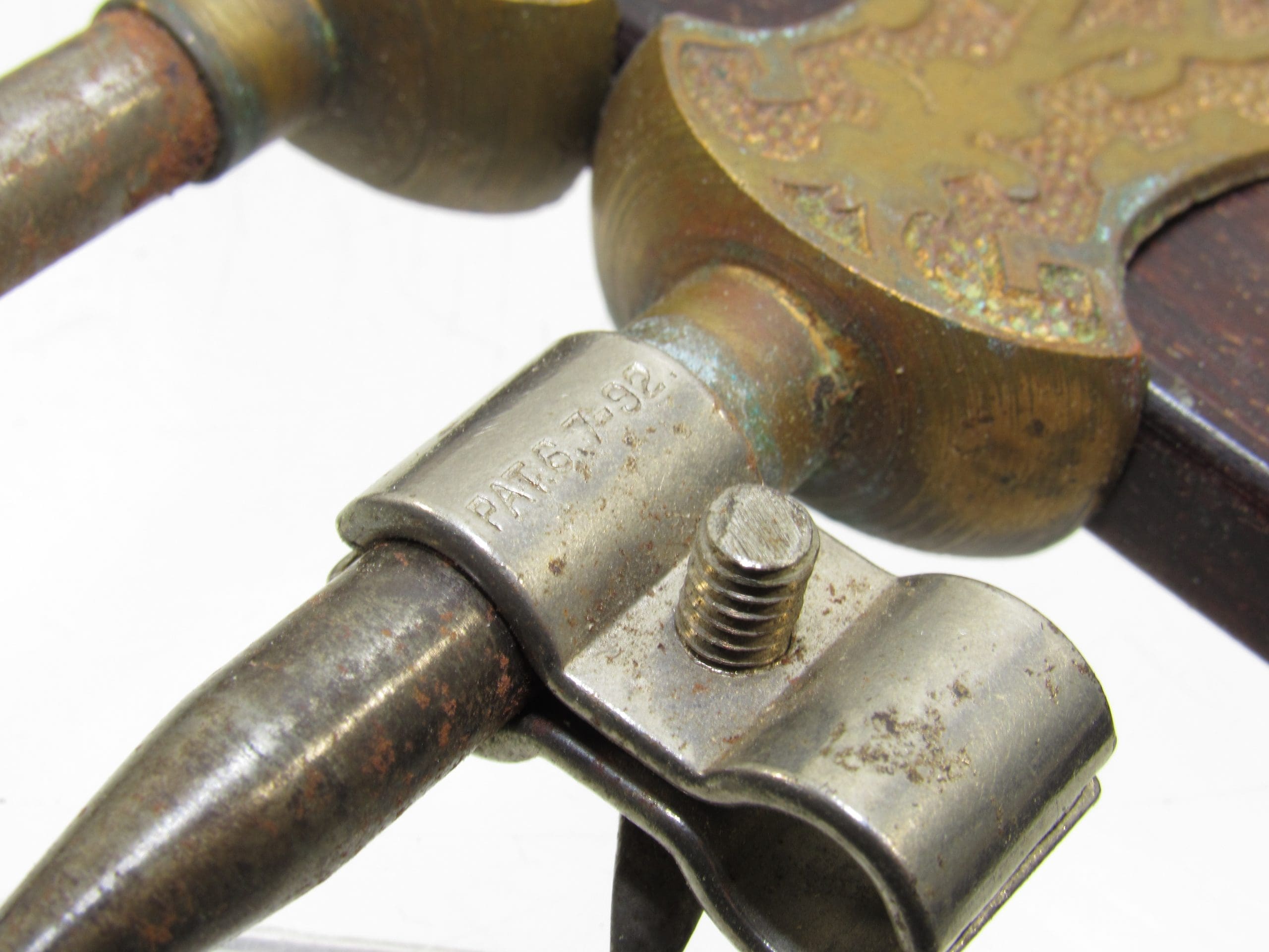 Fine Stanley # 2 Brass Trammel Points 4 1/2″ Tall With Original Pencil Holder On Rosewood Straight Edge.