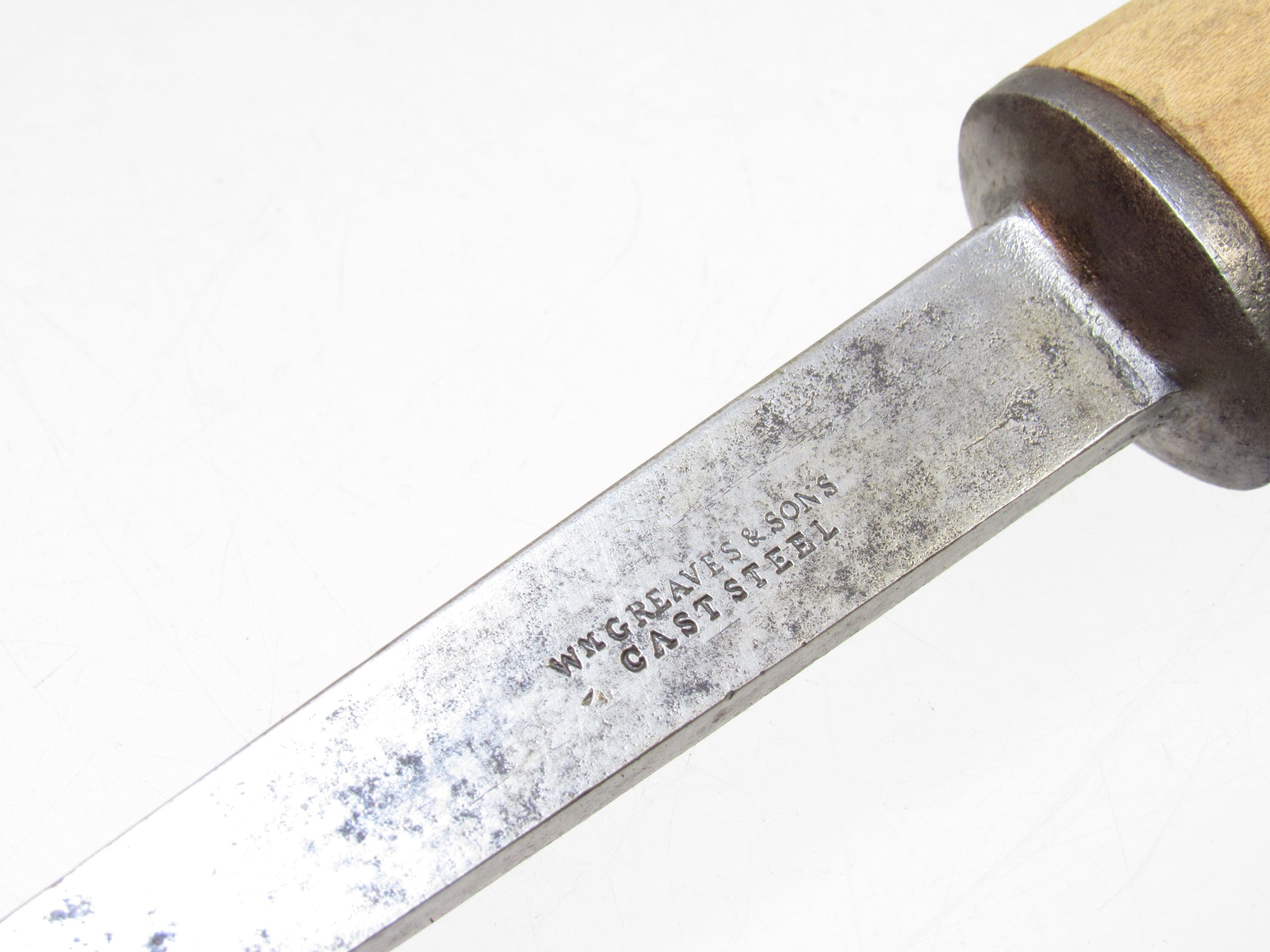 A stout mortise chisel from W. Greaves & Son, measuring 3/8″ wide and 12″ long. Made in Sheffield from cast steel and stamped with the Greaves name, it’s built for serious work.