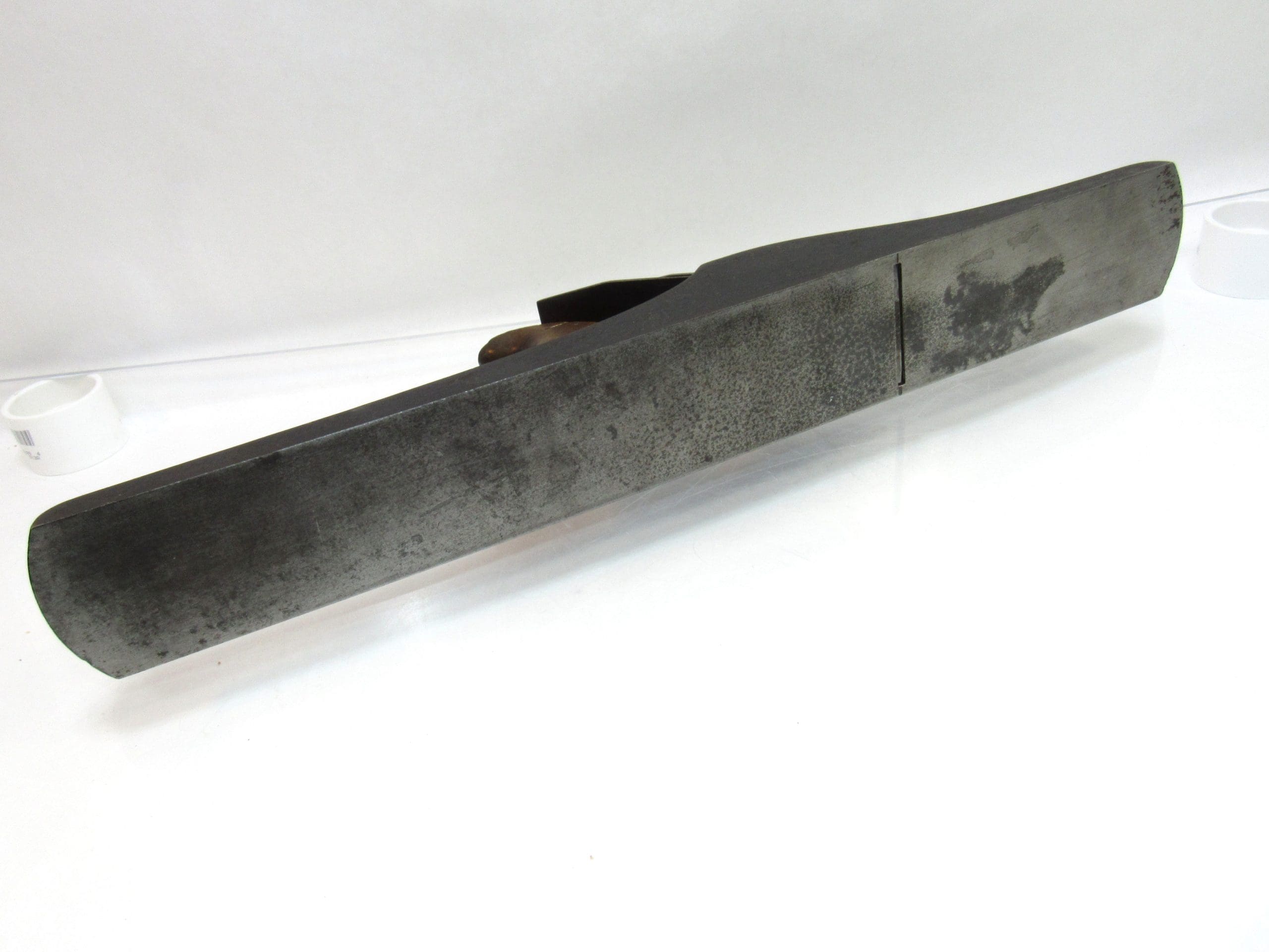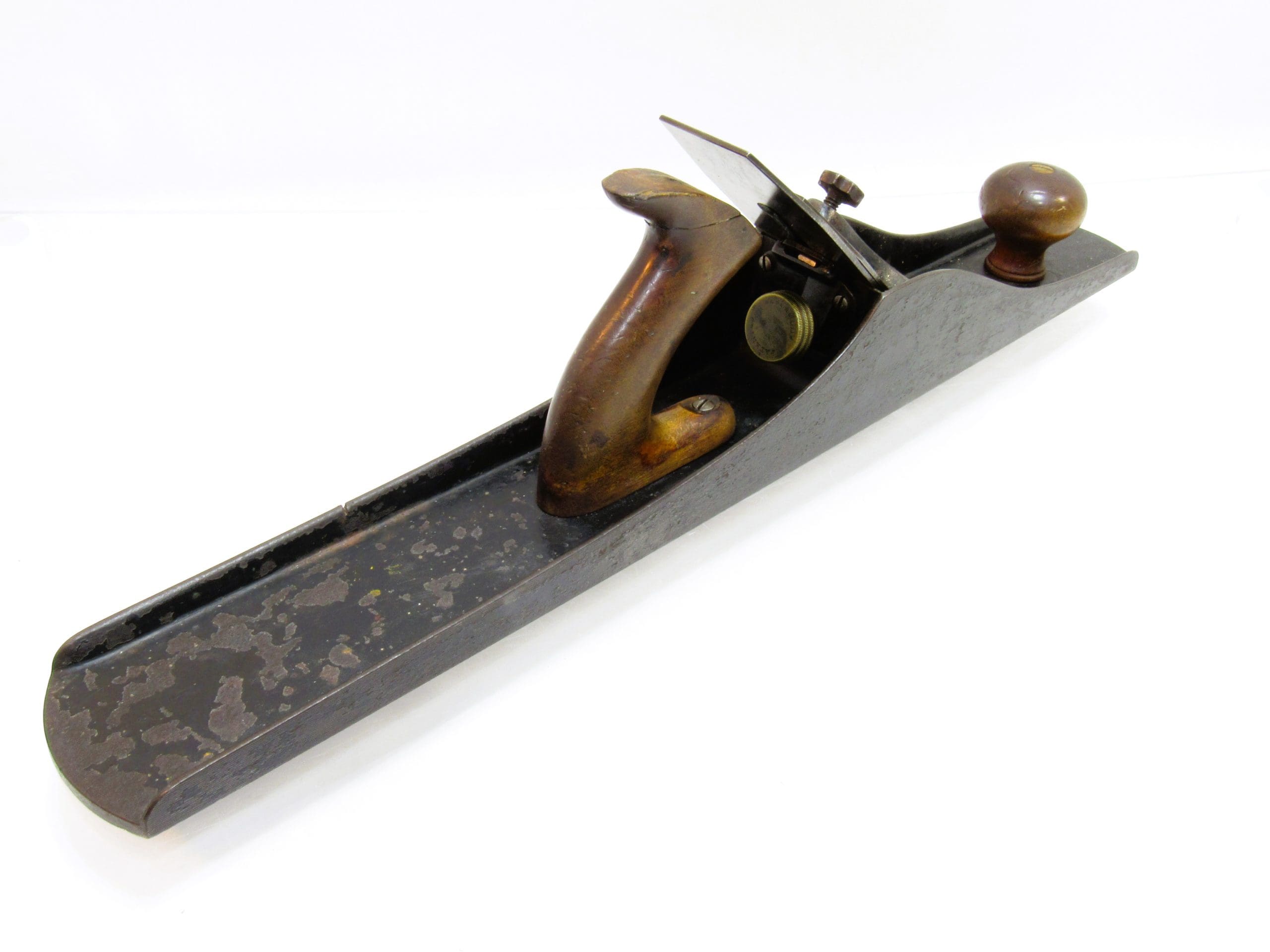 one of the tougher early Bailey examples to source in any condition. Both the iron and cap iron are properly marked, which is uncommon and adds significantly to its appeal for collectors . The lever cap is wonderful, retaining both back horns and showing the crisp form these early caps are known for. The adjuster works smoothly with no issues. The tote has a reglued tip,and shown clearly in the photos. Overall, itโ€™s an honest, scarce example of Baileyโ€™s patented jointer, with the right parts and the right look.