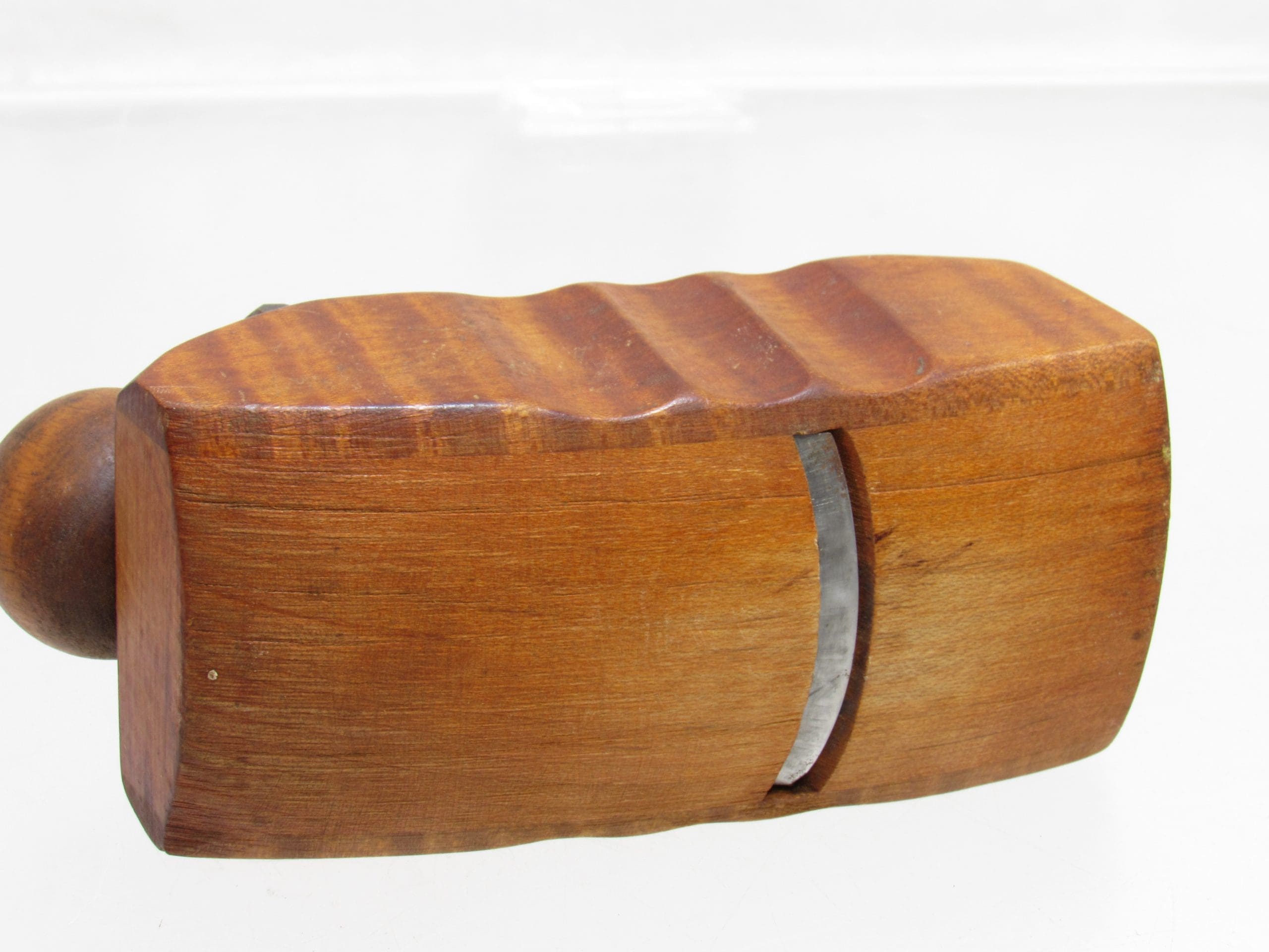 The plane’s sole features a precise curvature, ideal for refining chair seats after initial shaping with tools like an adze or scorp. The blade is sharp and ready for use, ensuring clean and efficient cuts. With its mint condition and exceptional craftsmanship, this tool is not only a practical addition to any workshop but also a collectible piece that reflects the artistry of traditional woodworking