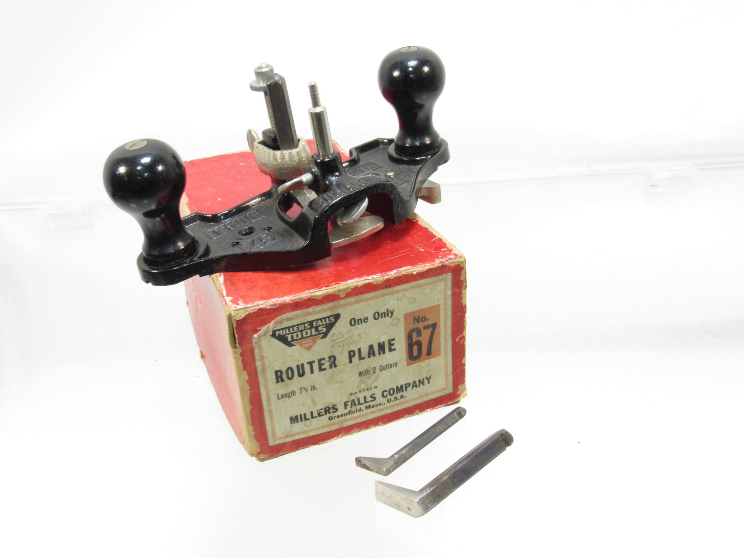 Minty Millers Falls # 67 Router Plane Complete with 3 Cutters Depth stop and Fence In Original Box.
