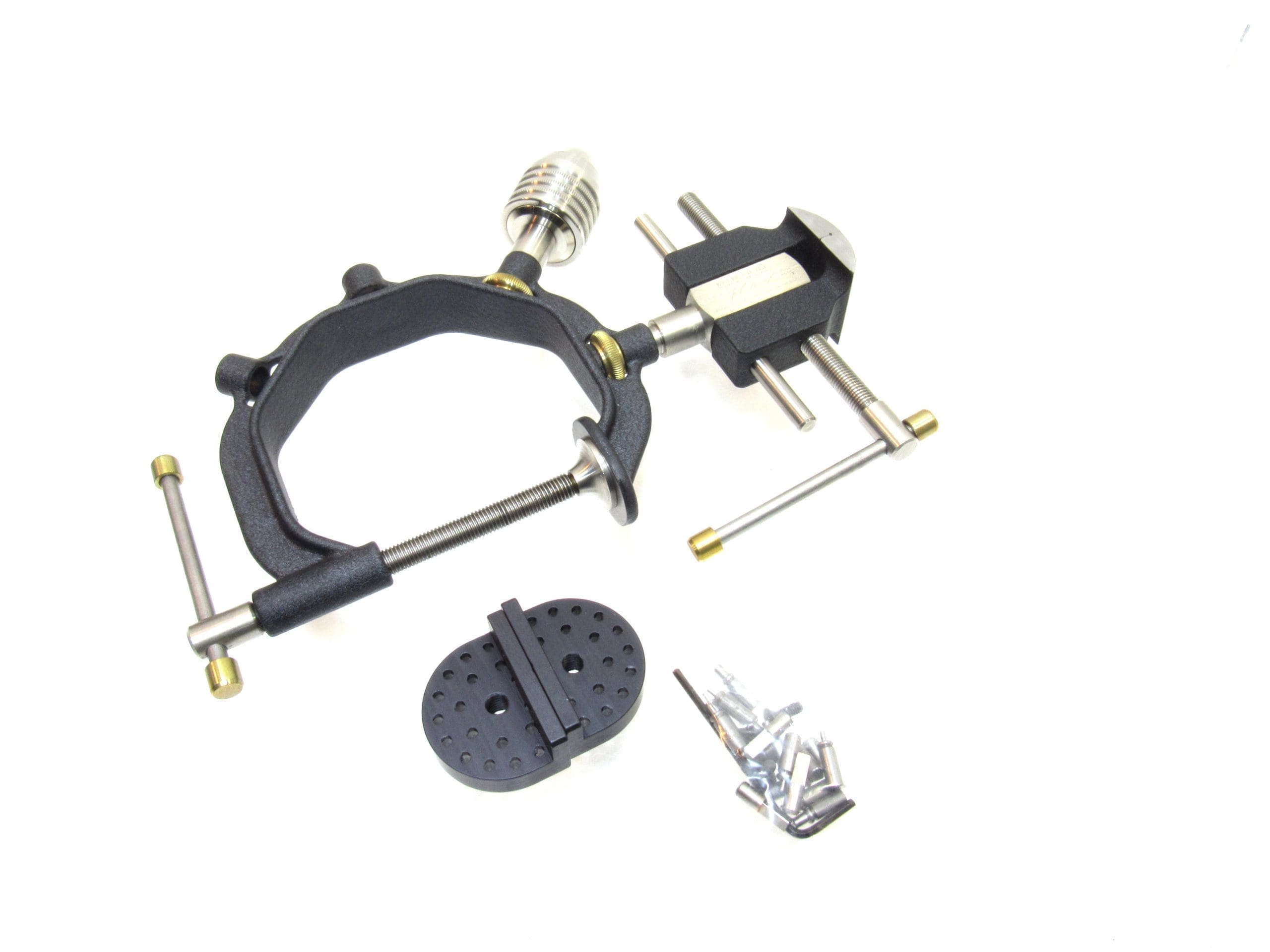 The BV-1 Bench Vise is an extraordinary new tool that will allow you to address all of your small work holding needs at just about any angle. This is the perfect tool for woodworkers, carvers, model makers, model railroad enthusiasts, electronic hobbies, soldering, jewelry making, clock repair and scores of other interests. Itโs fast to set up and equally fast to put away when not needed.