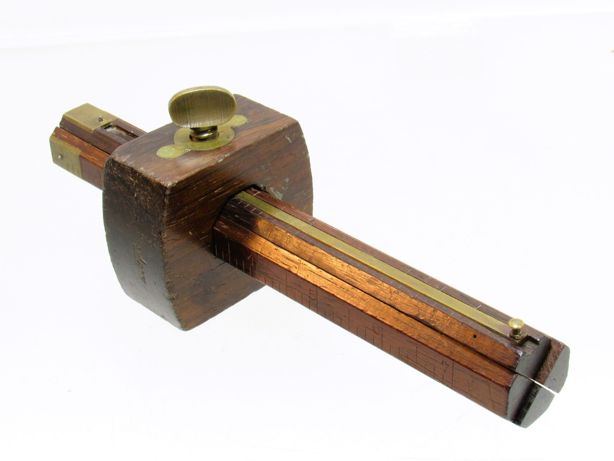 A rare and exceptional example of the C. Sholl patented 4-stem marking gauge, patented on March 8, 1864. This beautifully crafted tool features rosewood and brass construction, offering both durability and precision for fine layout work.
