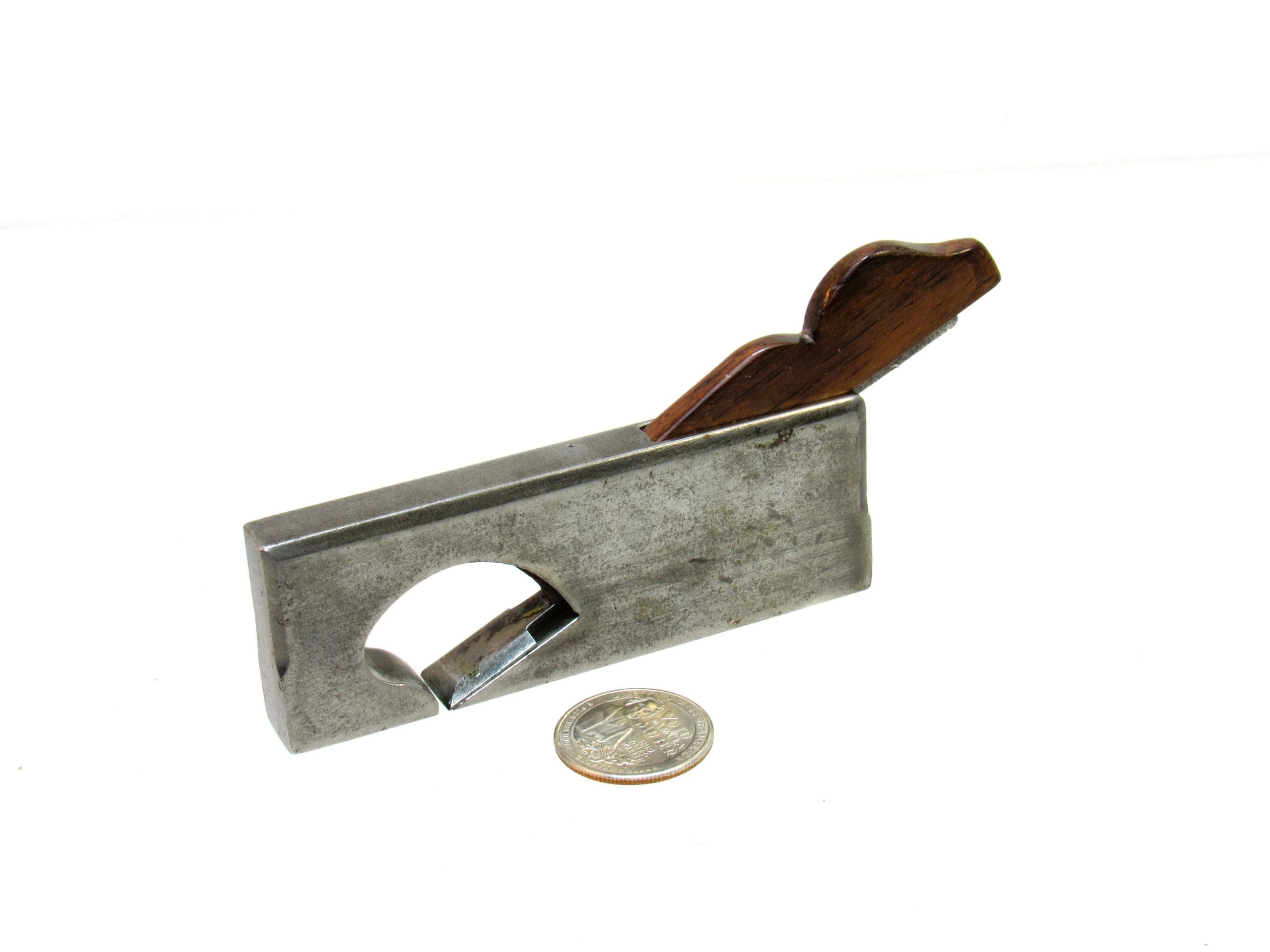 A truly exceptional and hard-to-find miniature infill rabbet plane, measuring just 4 inches in length with a 1/2-inch iron. This compact yet solidly built plane is perfect for precise joinery work, offering a tight mouth for fine shavings and controlled cuts.