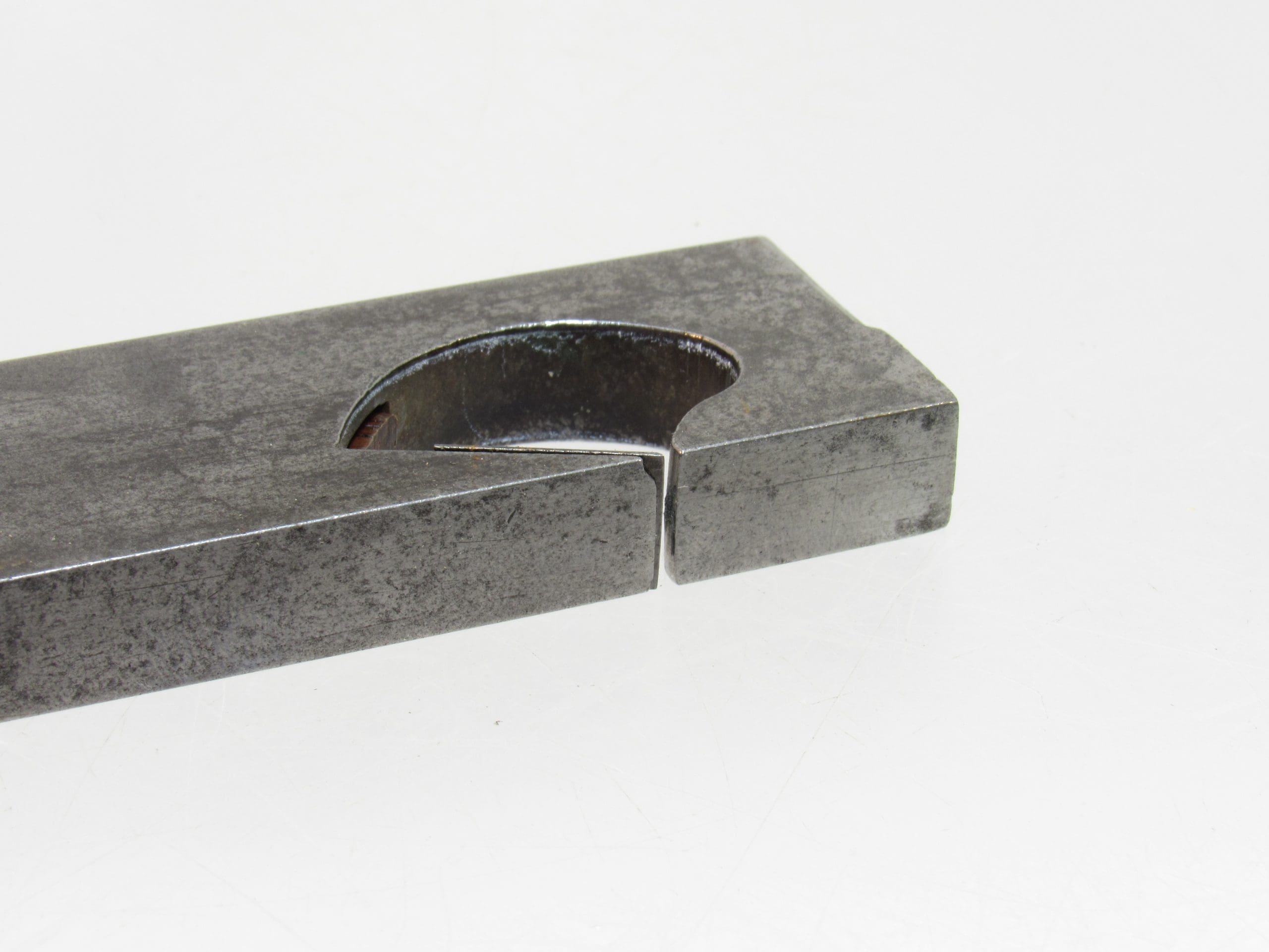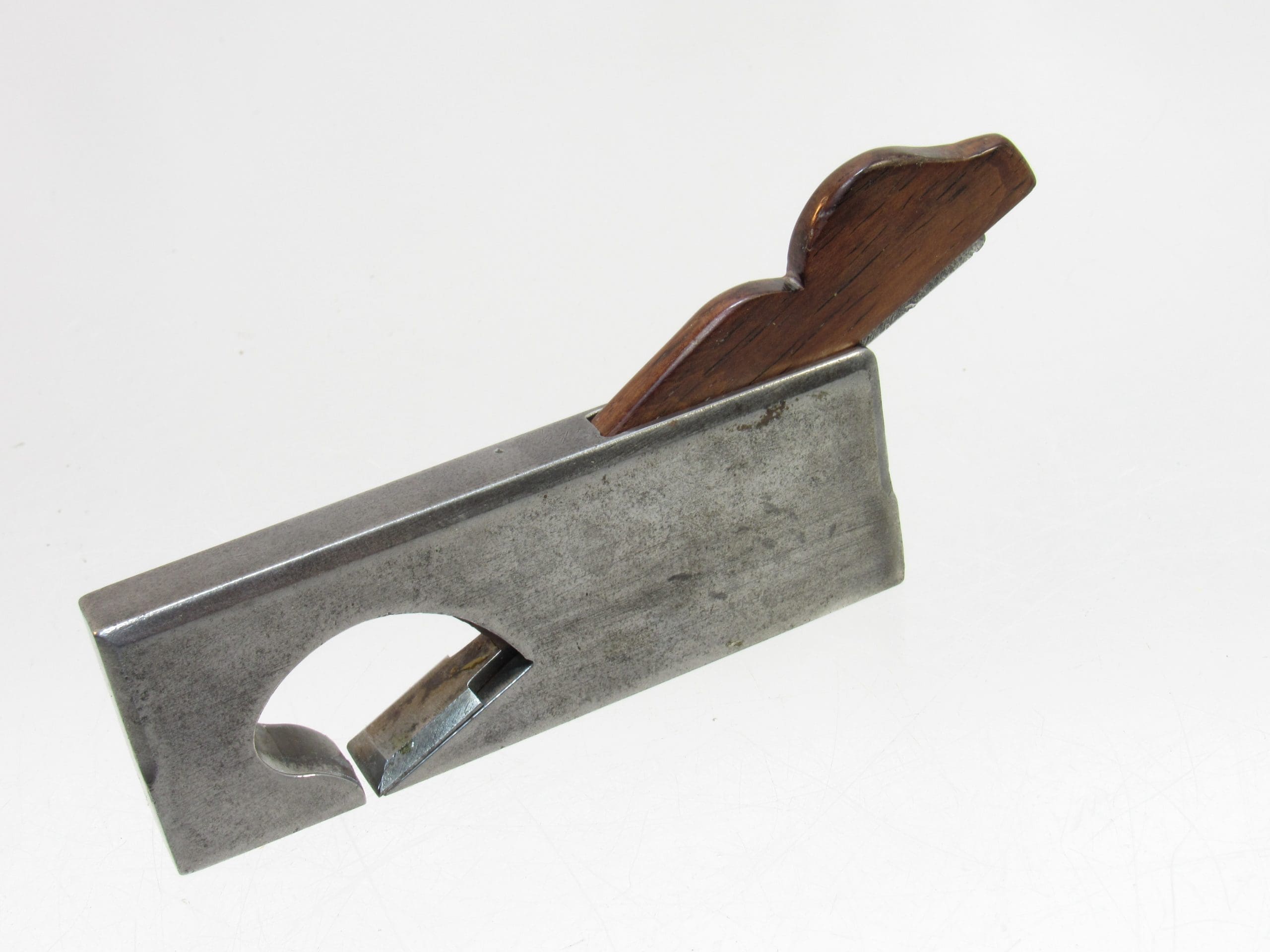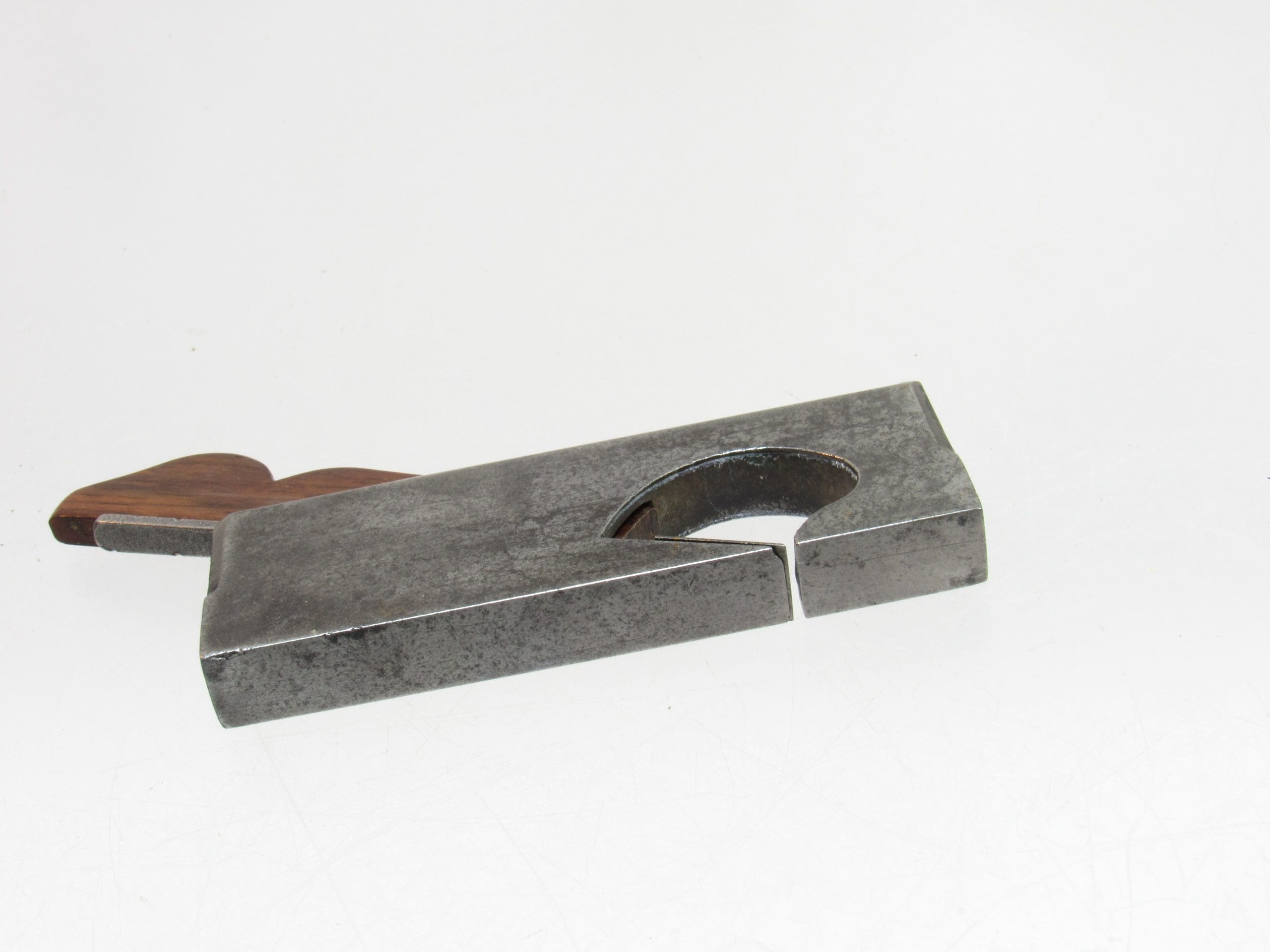 Crafted with quality materials, this plane showcases the classic infill construction, ensuring durability and a smooth working experience. There is a tiny corner chip in the mouth, though it does not affect performance and remains an excellent addition for both collectors and craftsmen.
