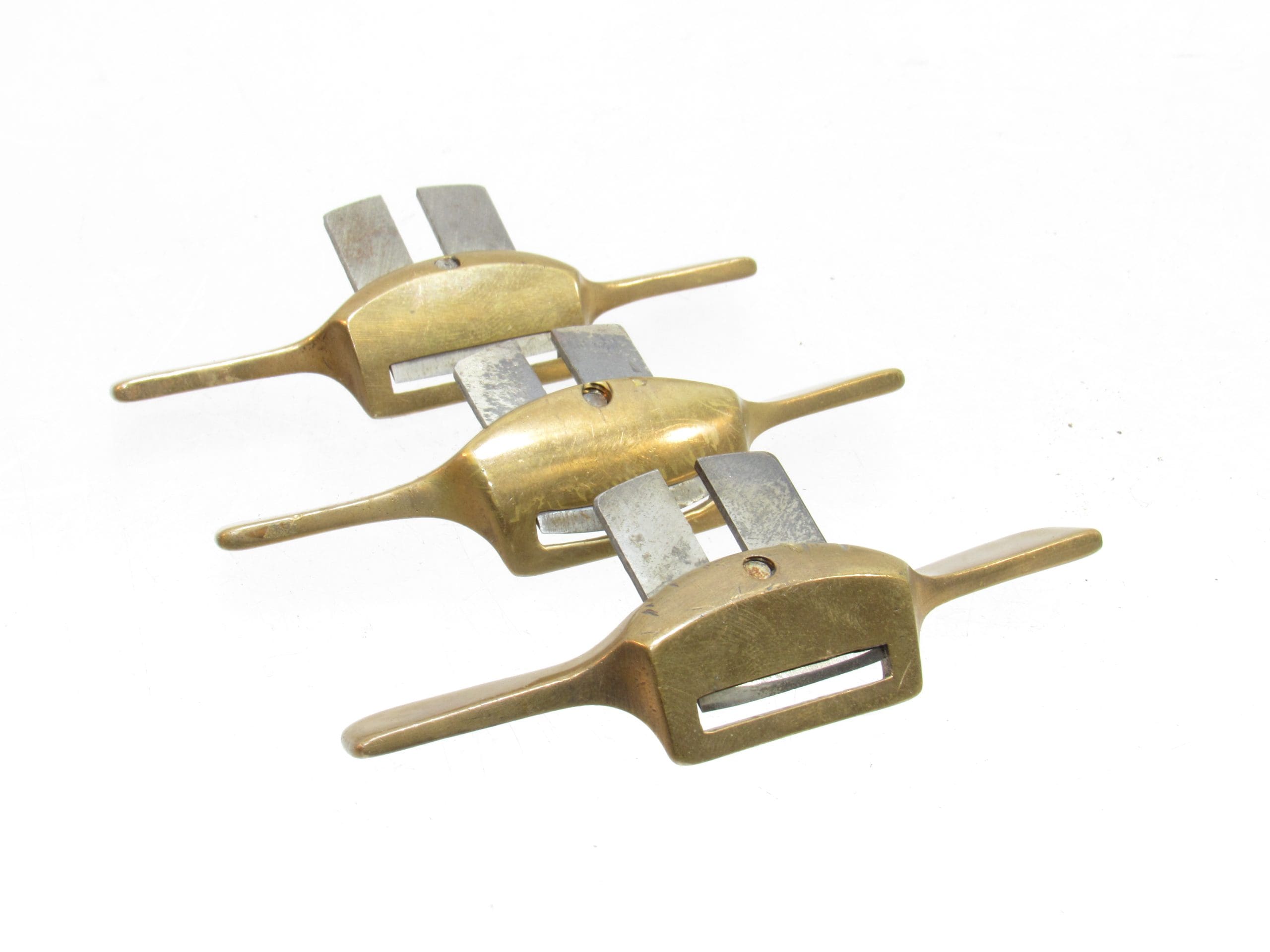 Set Of 3 Miniature Brass Instrument Makers Spokeshaves