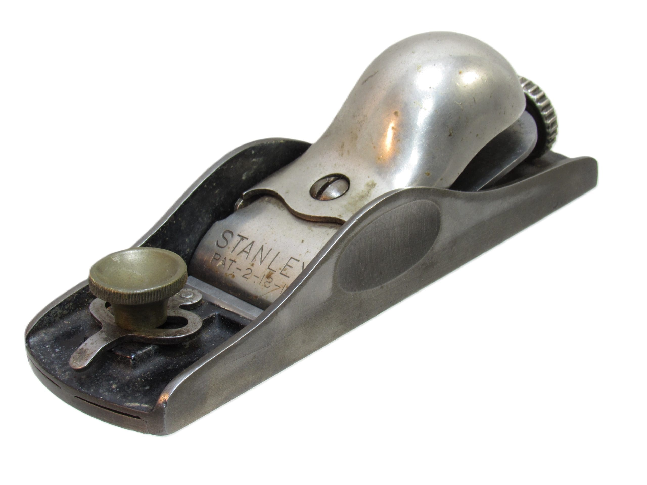A nice example of Stanleyโs No. 65 low angle block plane, complete in its original box, this tool is prized for its sleek design and precision performance. With a 12ยฝยฐ bed angle, adjustable mouth, and compact form, itโs ideal for end grain work and fine finishing.
