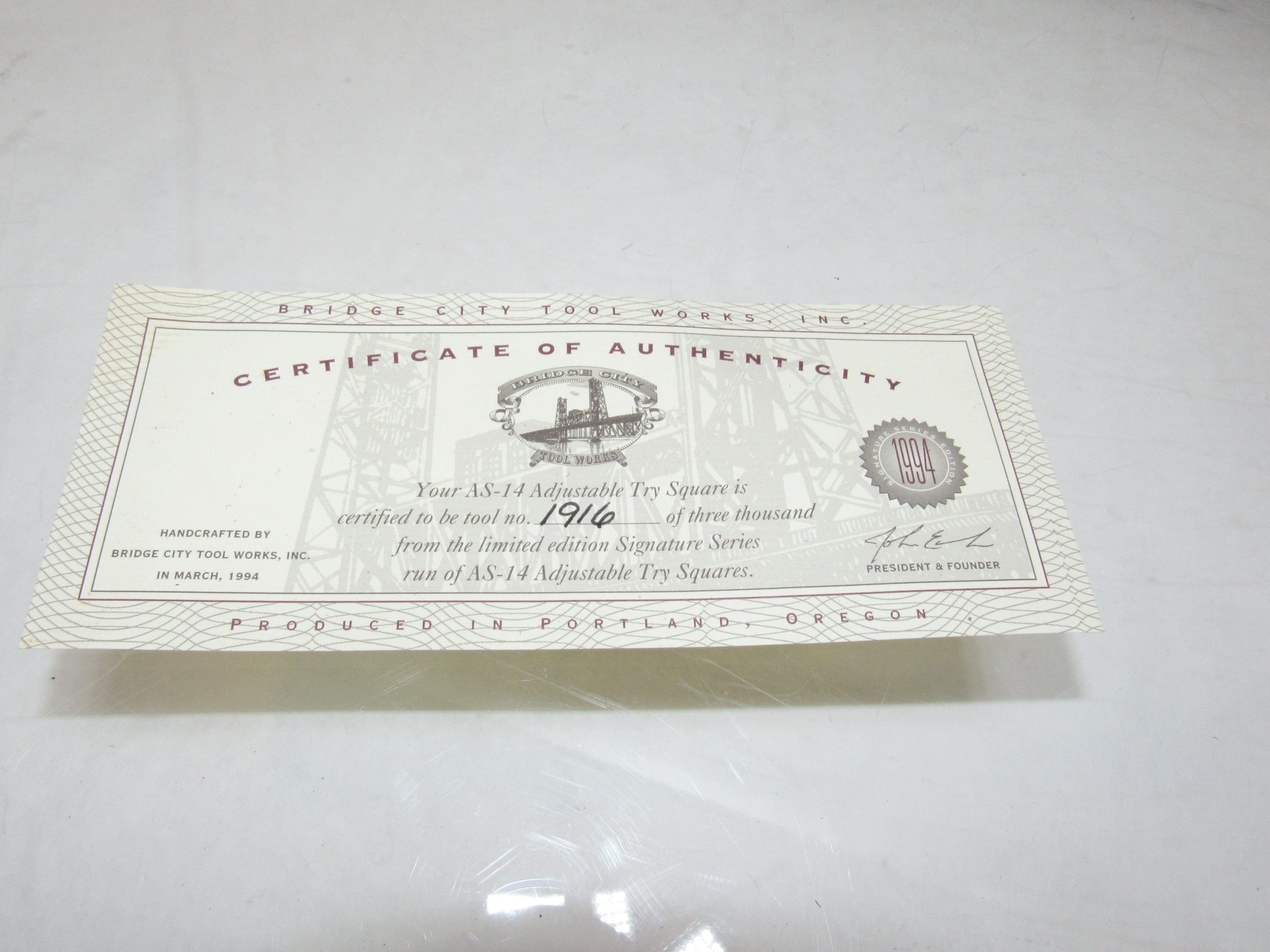 Bridge City Tool AS-14 Adjustable Try Square In Original Box Made In USA 1994