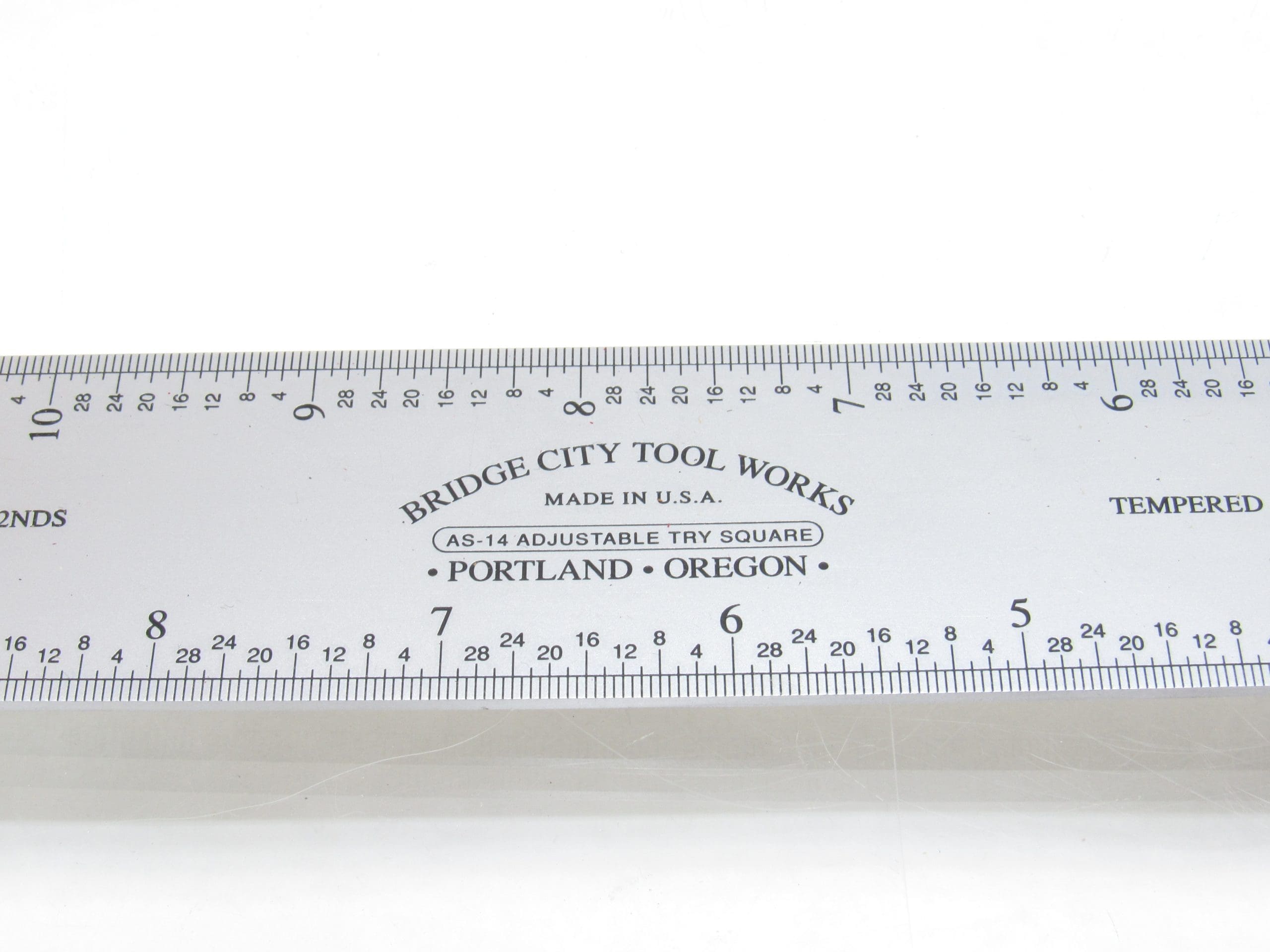 The AS-14 is a fantastic size square and allows full access of the 12″ blade on the inside rule and reads to 14″ on the outside rule. This size square will allow layout and measurement on lumber up to 12″ in width. Most important, the accuracy is plus or minus .001″ over the length of the blade, making this the most accurate square we have ever produced. In essence, this is a 12″ hook rule.