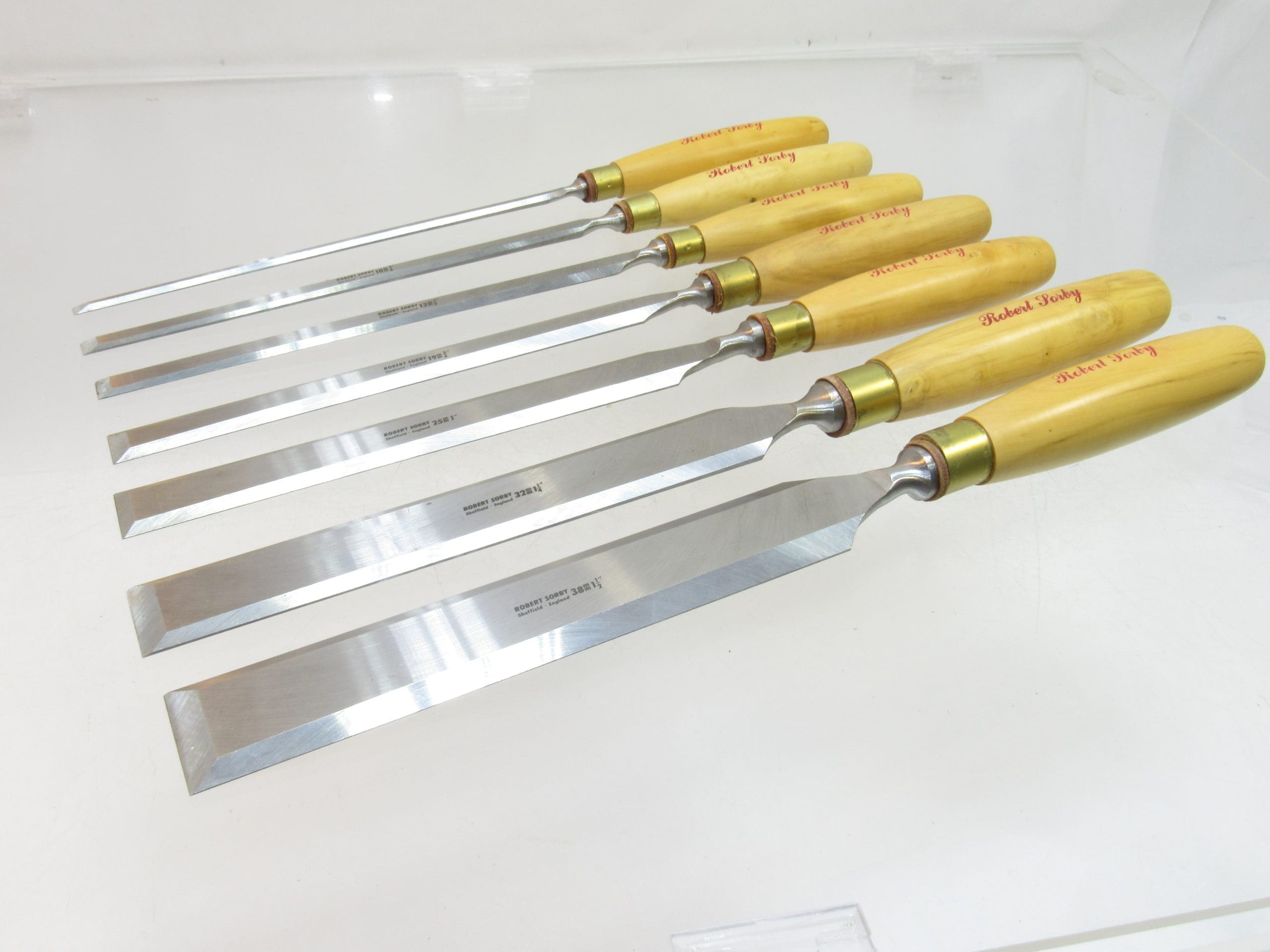 Superb Set of 7 Robert Sorby Extra Long Paring Chisels โ Boxwood Handles โ Sheffield Steel โ In Original Case