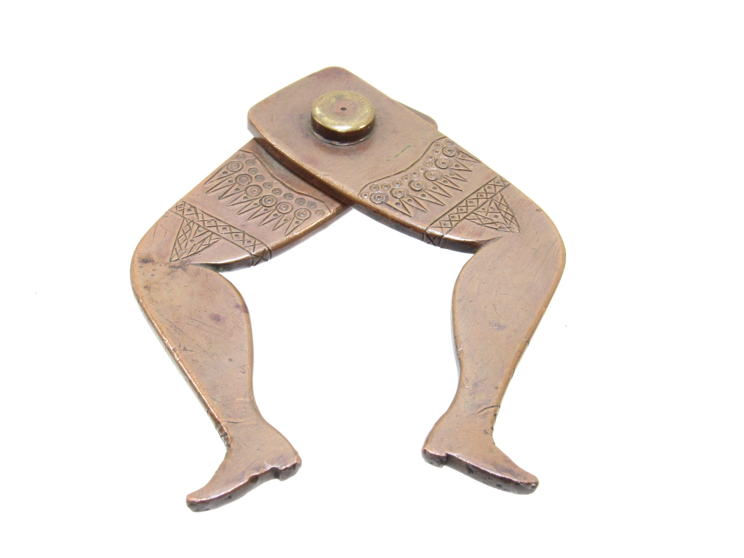 Extraordinary Very Early Superb Highly Decorated Shapely Bronze Lady Leg Outside Figural Caliper