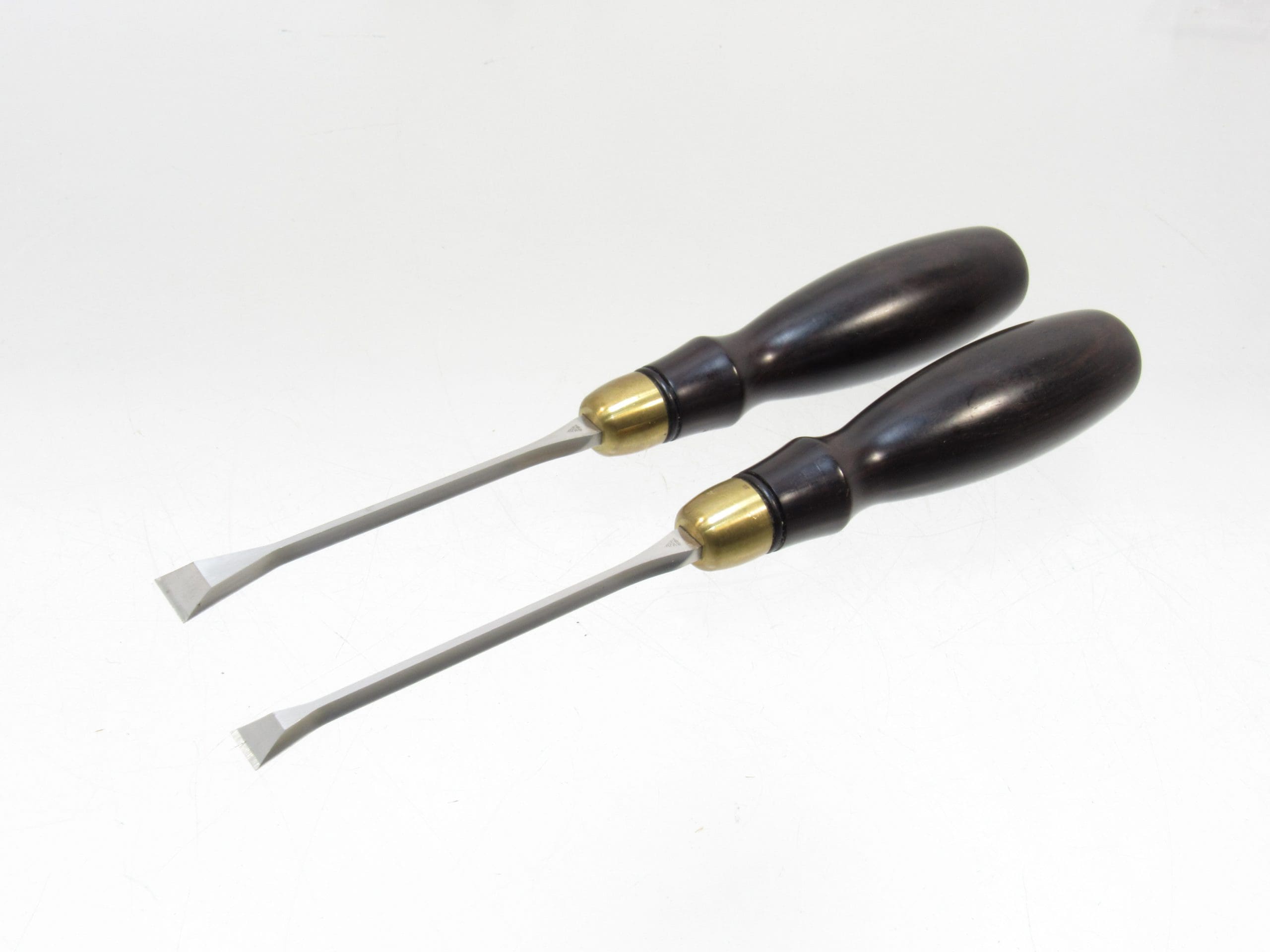 Mint Pair Of Blue Spruce Tools Optima Fishtail Chisels 1/2" & 3/8" In Discontinued African Blackwood
