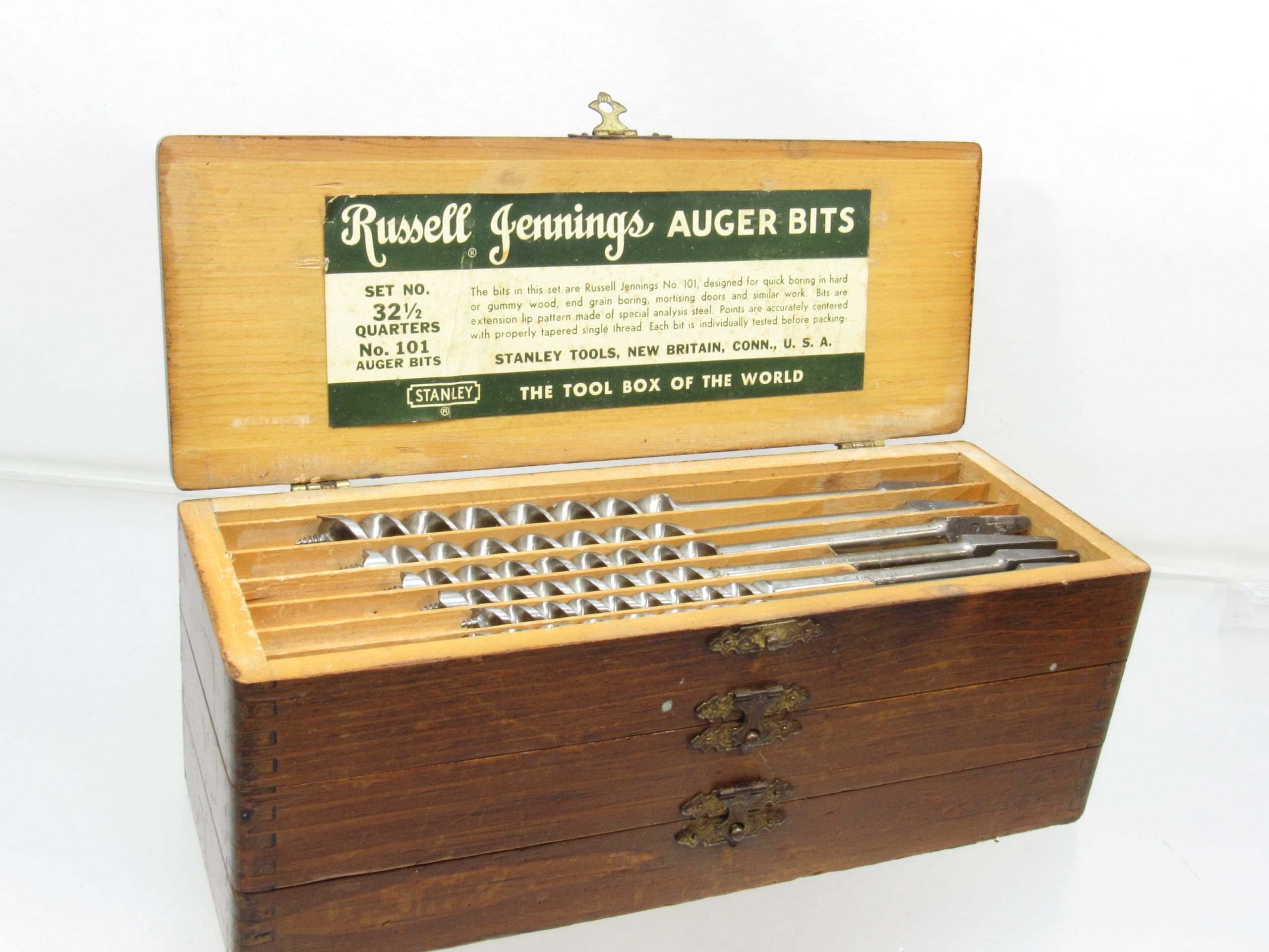 Superb Set of Russell Jennings Stanley Auger Bits in Three Tier Box