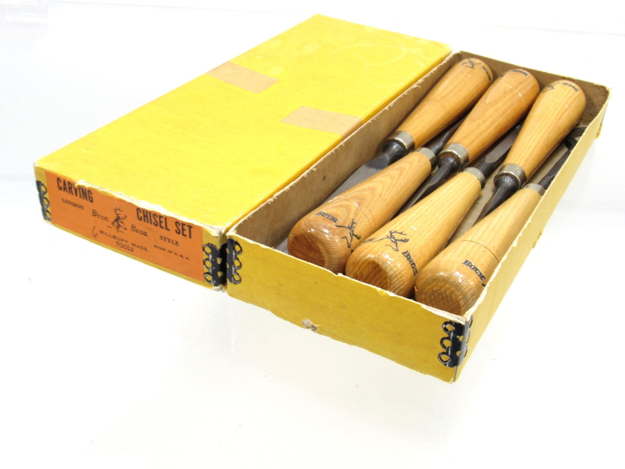 New Old Stock Set of 6 Buck Brothers Carving Chisels in Original Box.