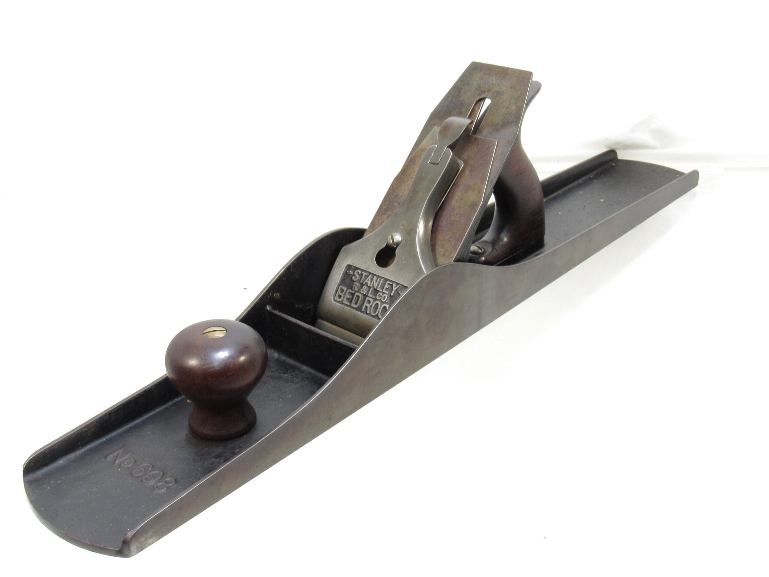 Super Nice Early Stanley # 608 C Corrugated Bottom Jointer Plane with 3 Line Lever Cap. The Big Boy.