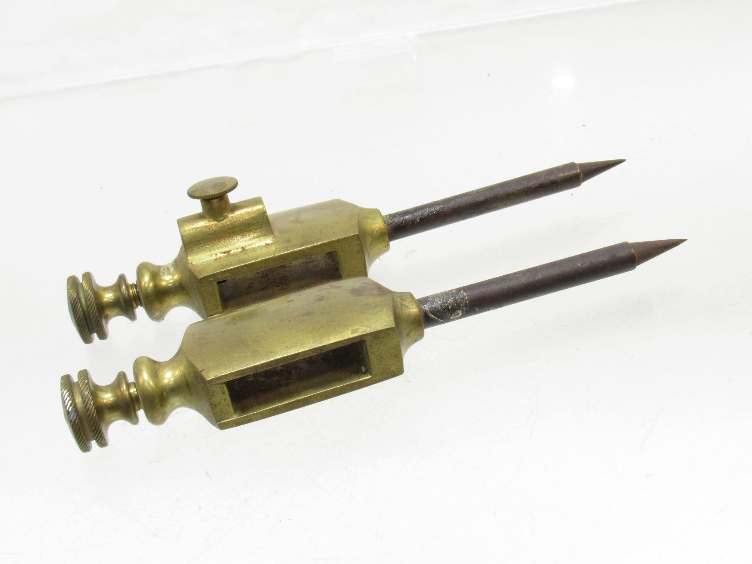Amazing Very Early Brass Trammel Points With Pencil Holder Extra Large Example 8 1/4" Tall