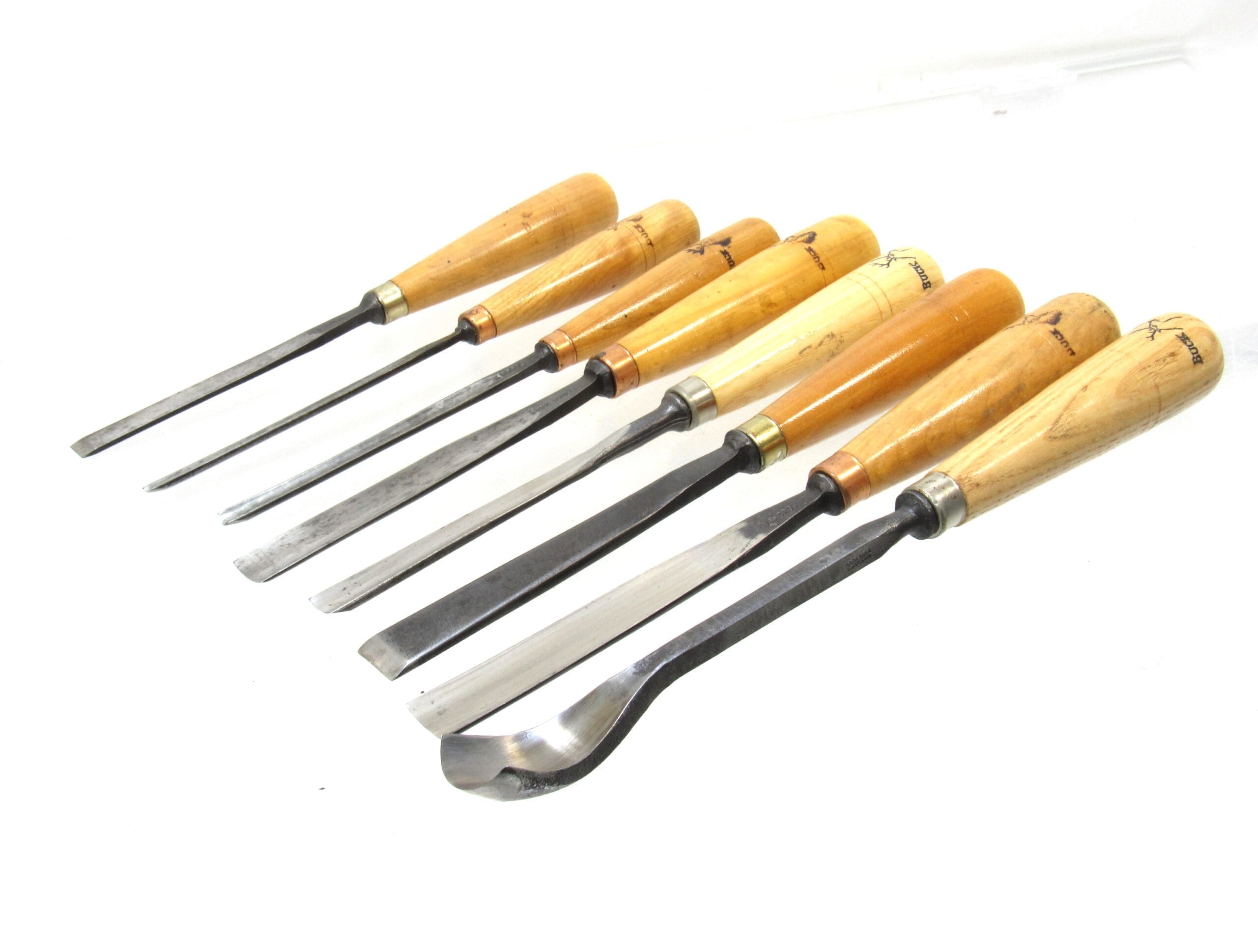 Awesome Large Size Set of 8 Buck Brothers Carving Chisels