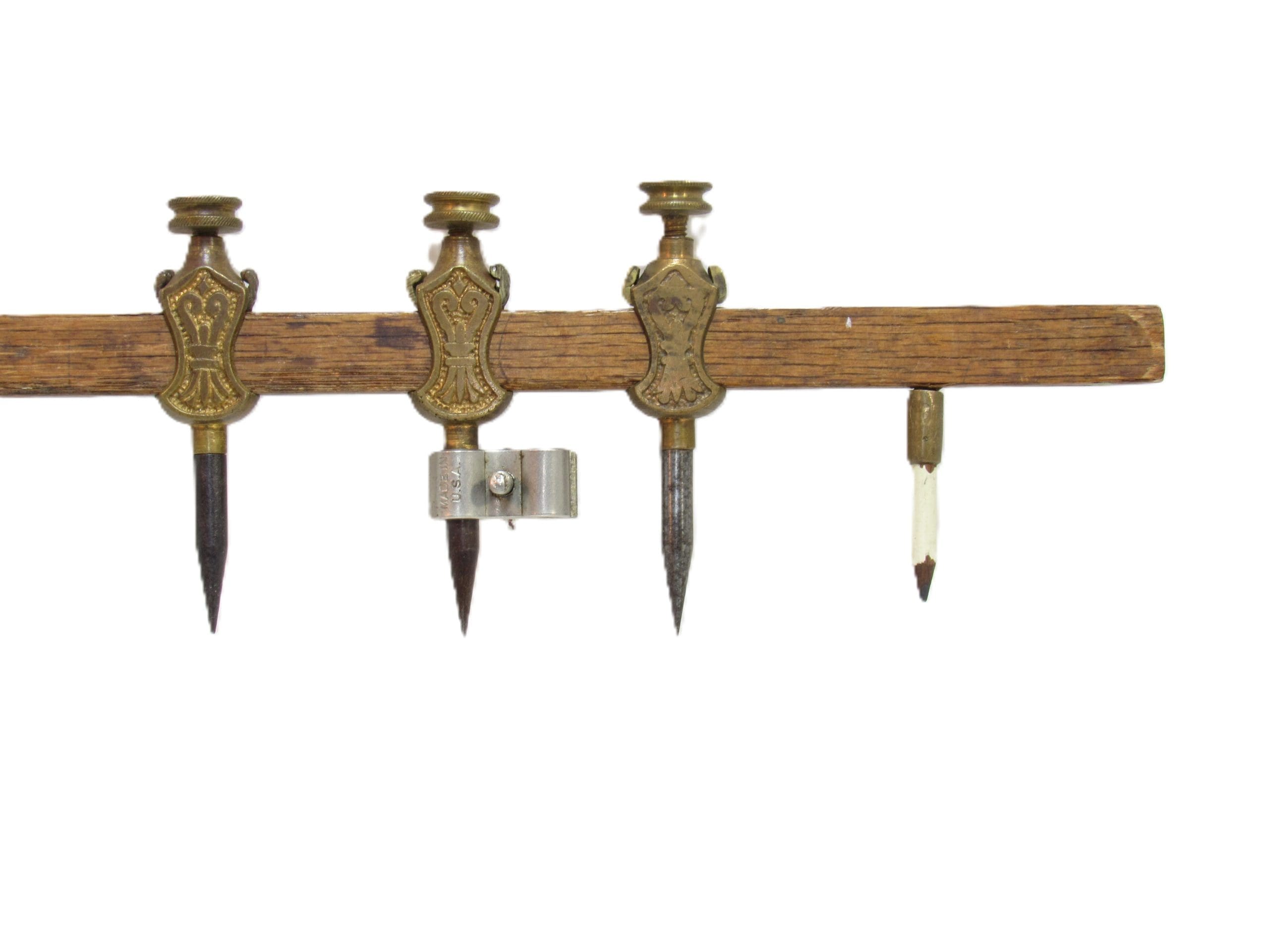 Amazing Fine Stanley # 1 Brass Trammel Points 3 1/2" Tall With Proper Interchangeable Pencil Tip Holder & Pencil Clasp