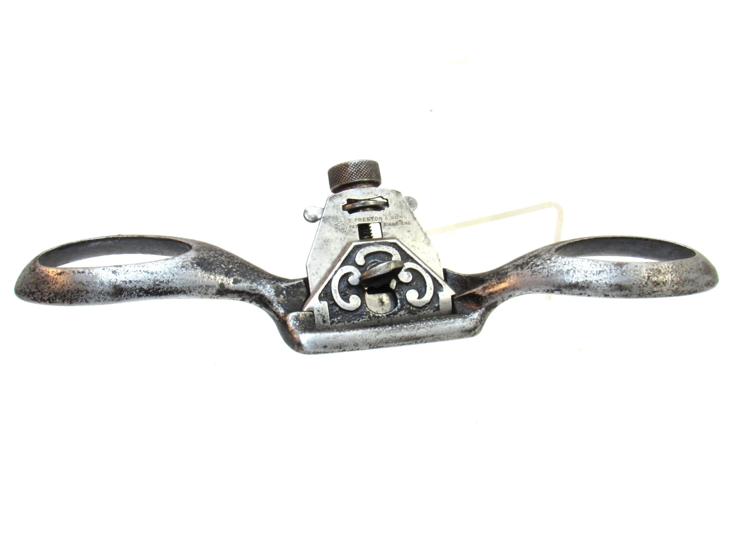 Rare Off Set Handle E Preston Adjustable Iron Spokeshave 10" Long Flat Sole