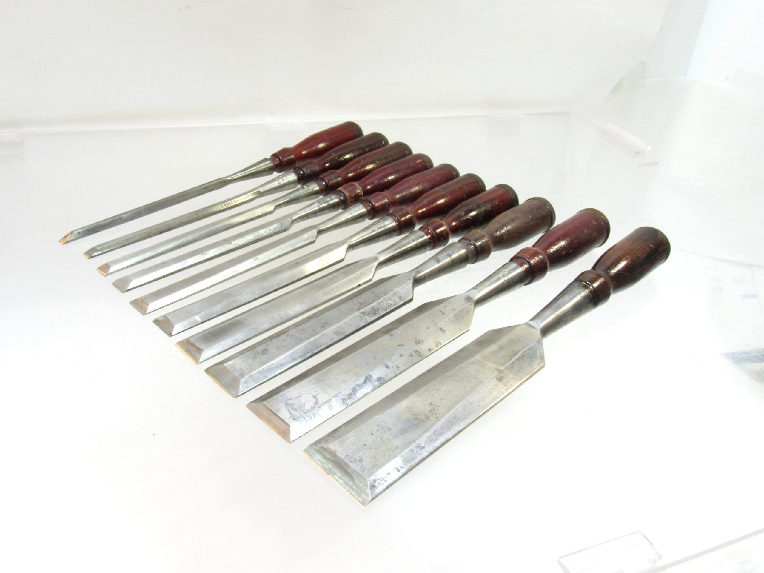 Set Of 10 Stanley No 720 Socket Chisels Graduated 1 3/4" - 1/4" All But 1 Marked 720