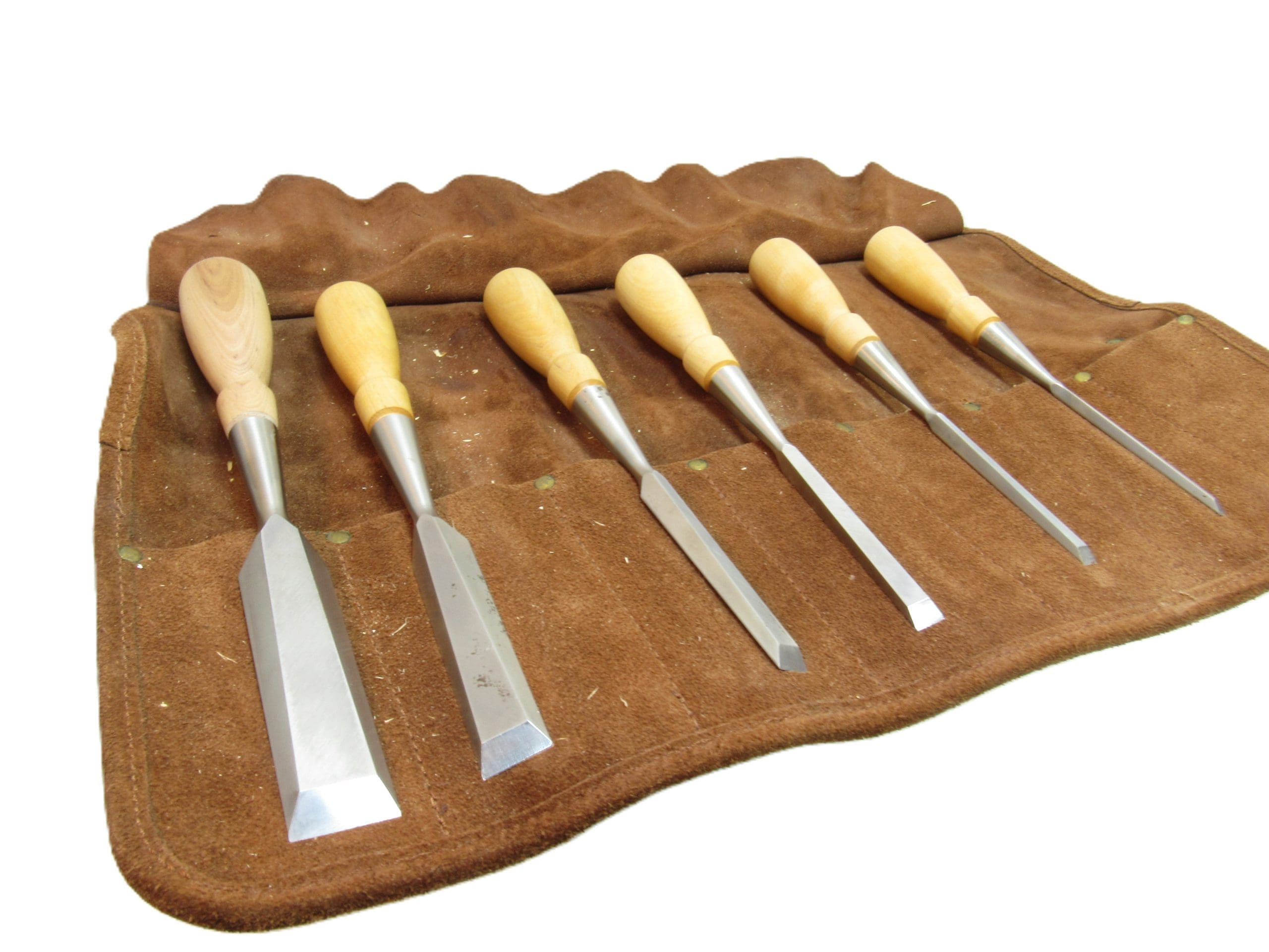 Superb Set of 6 Lie Nielsen Chisels In Lie Nielsen Leather Chisel Roll 1/8" 1/4" 3/8" 1/2" 3/4" 1" Wide