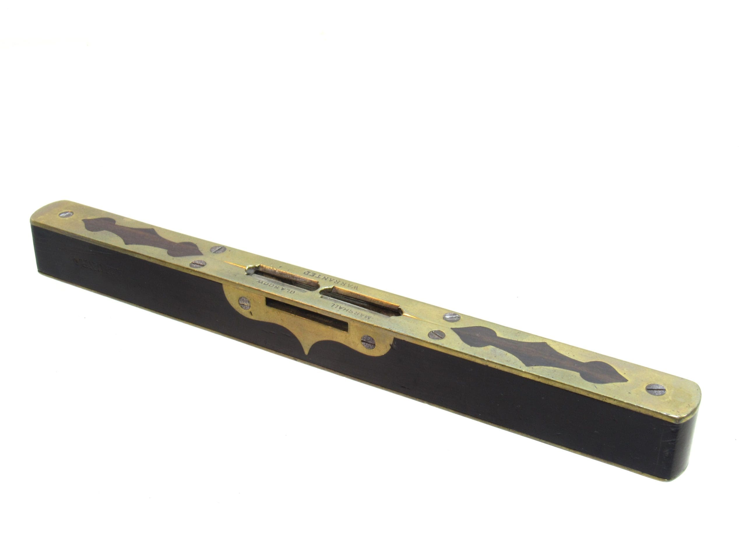 A True Showpiece 10" Ebony & Brass Level Marked Marshall Glasgow