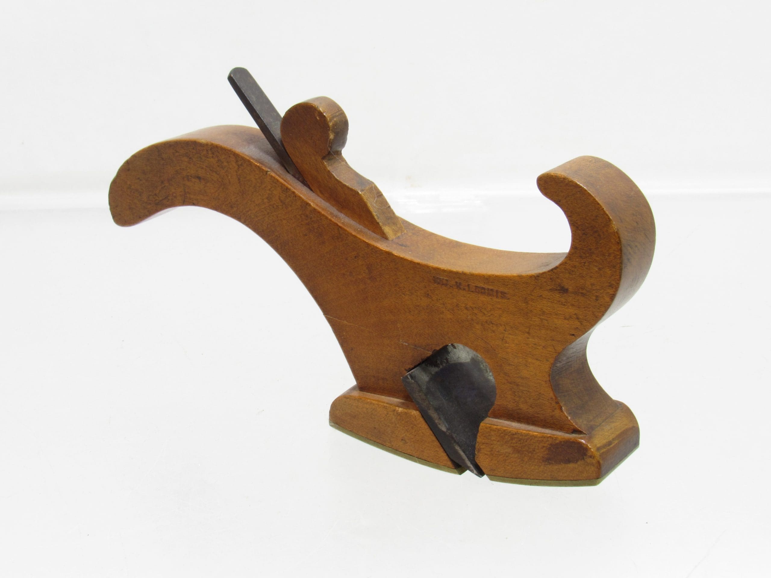 Curvaceous Early Tail Handled Instrument / Carriage Makers Plane With Brass Sole