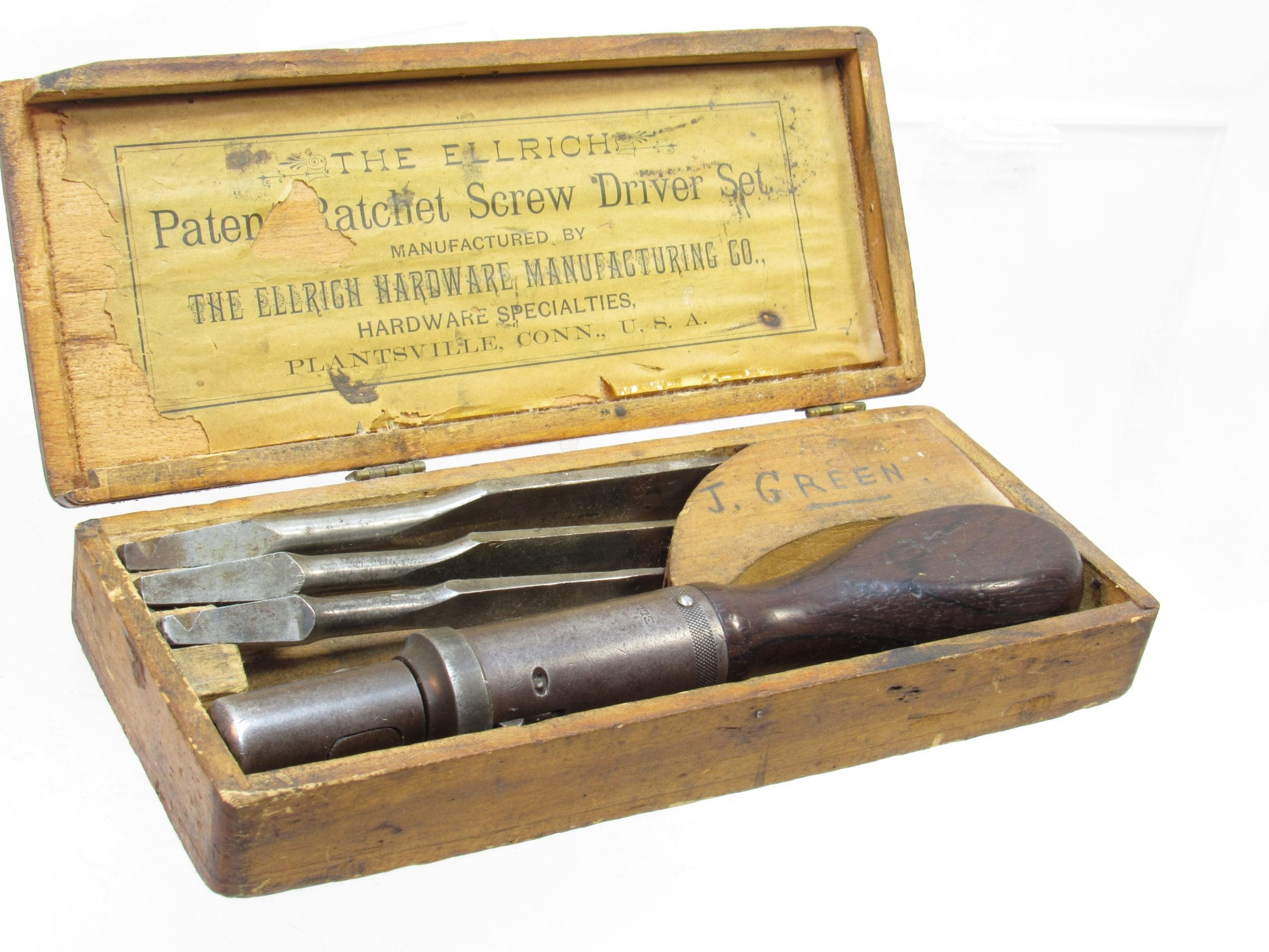 Rare Ellrich Patent Ratchet Screwdriver Set With Bits In Original Box With Label Patent Feb 19 1884