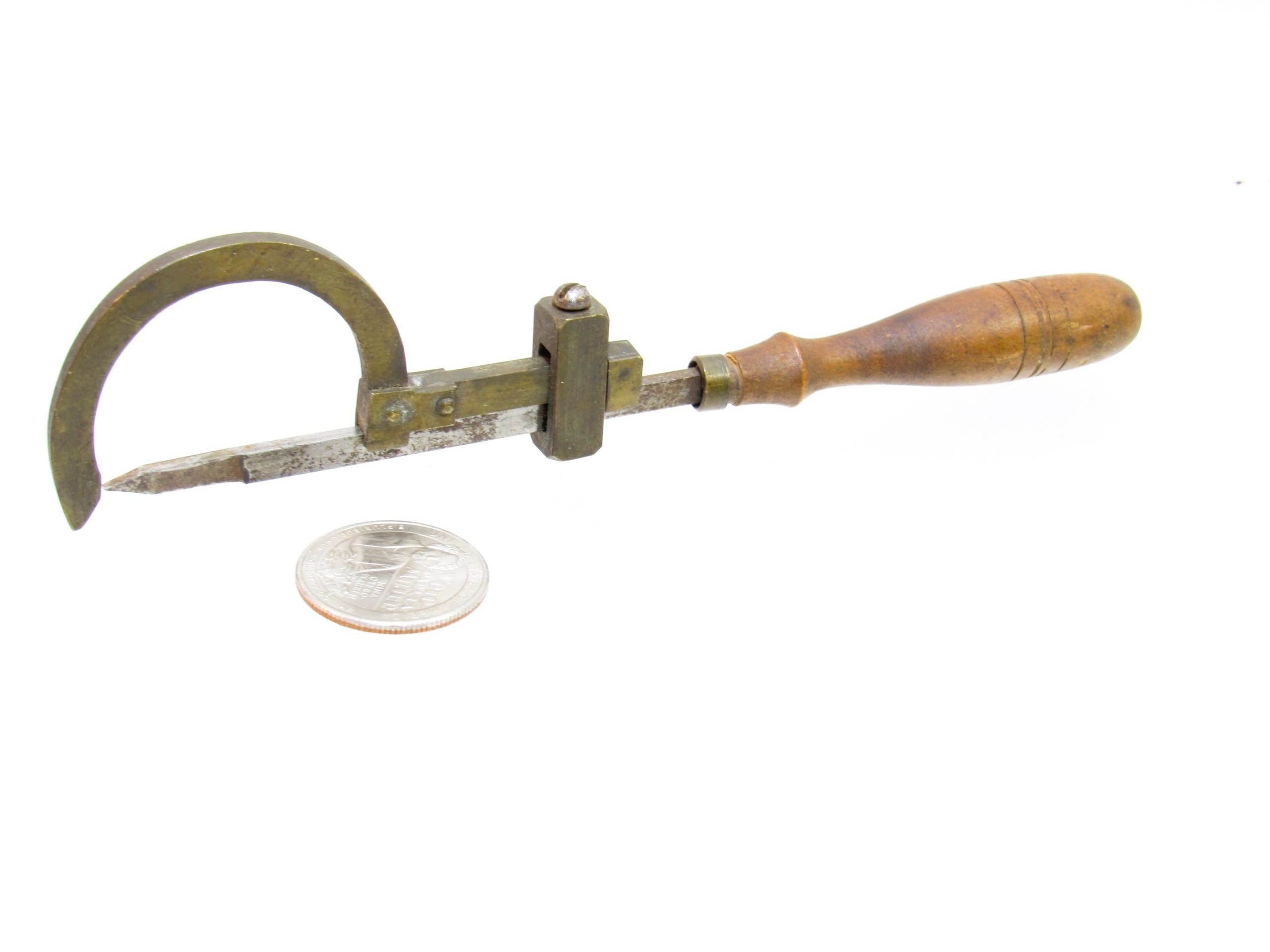 A Showpiece Small Early Brass & Iron Sizing Tool Only 6 1/2" Long