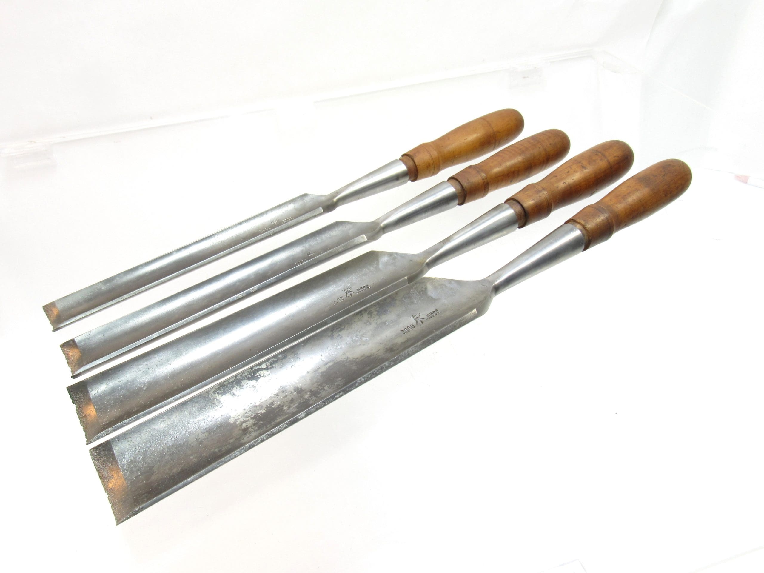 Large Set Of 4 Buck Brothers Cast Steel Gouge Chisels 2" 1 3/4" 1 1/2" 1 1/4" @ 18" Long
