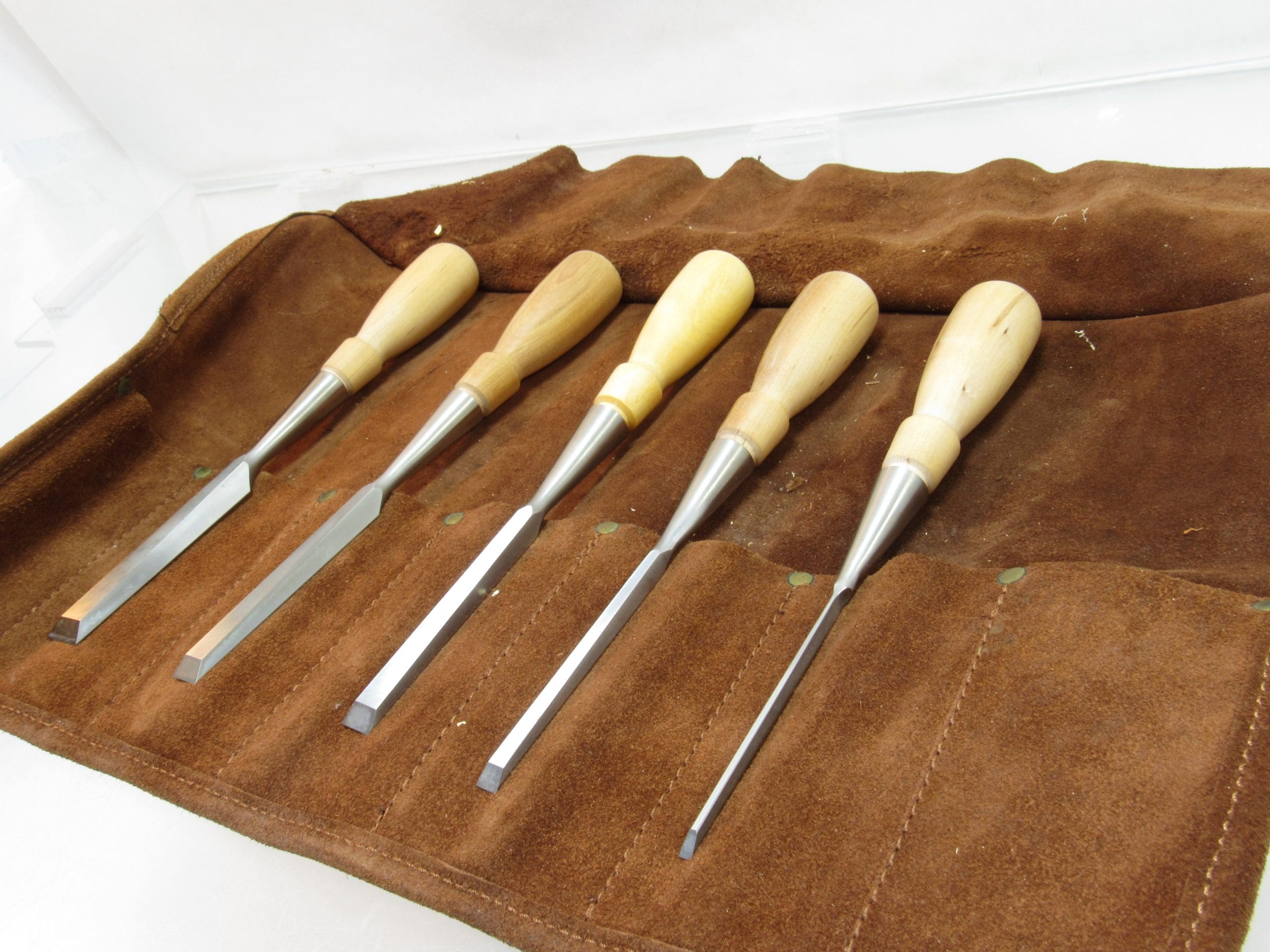 Superb Set of 5 Lie Nielsen Chisels In LN Chisel Roll 1/8" 1/4" 3/8" 1/2" 3/4"