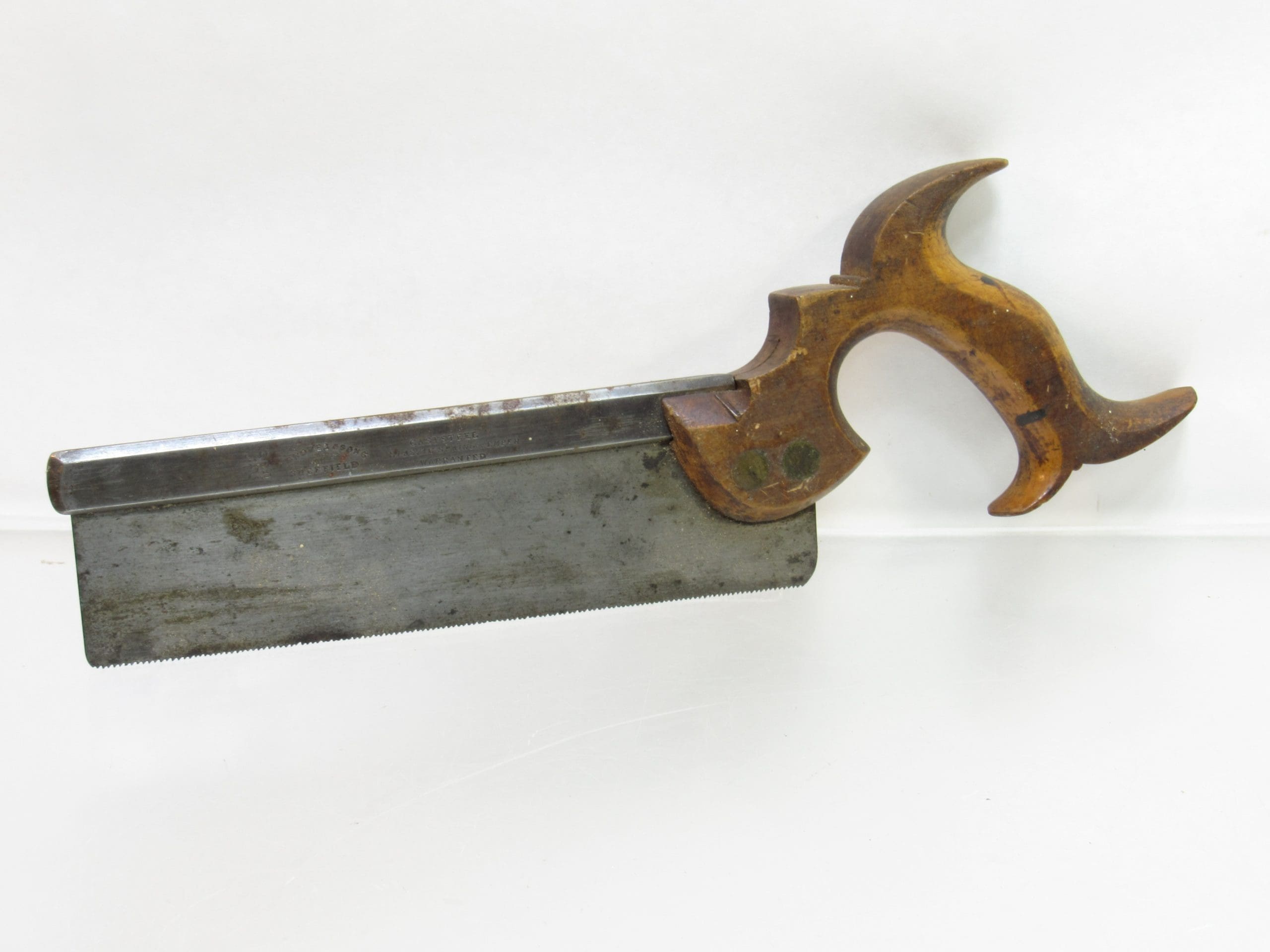 Great Early Groves & Sons Split Nut Back Saw 8" Plate Awesome Handle Straight & Sharp