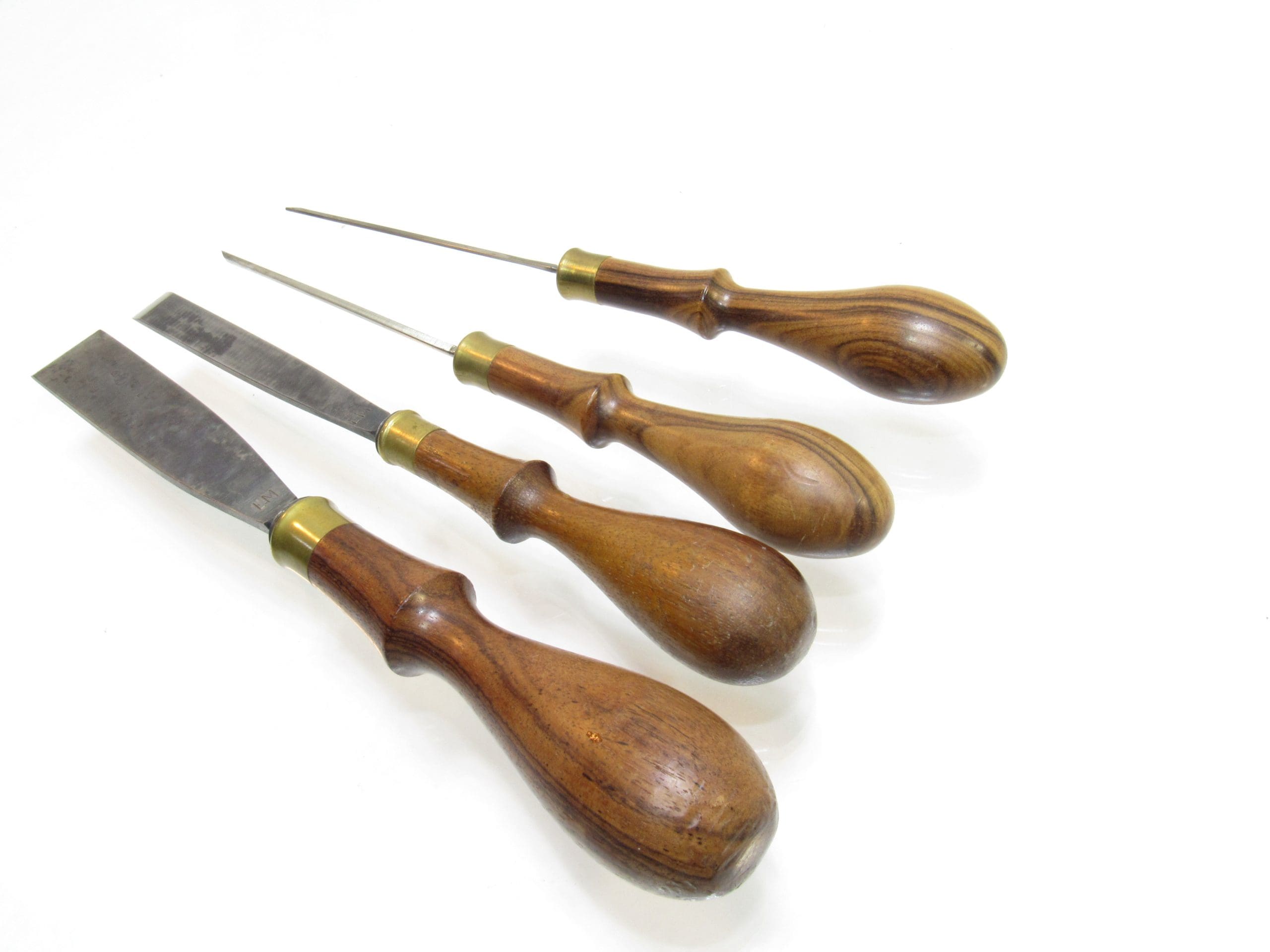 4 Superb Luthier Chisels With Exotic Wood Handles Maybe Cape Forge Marked LM