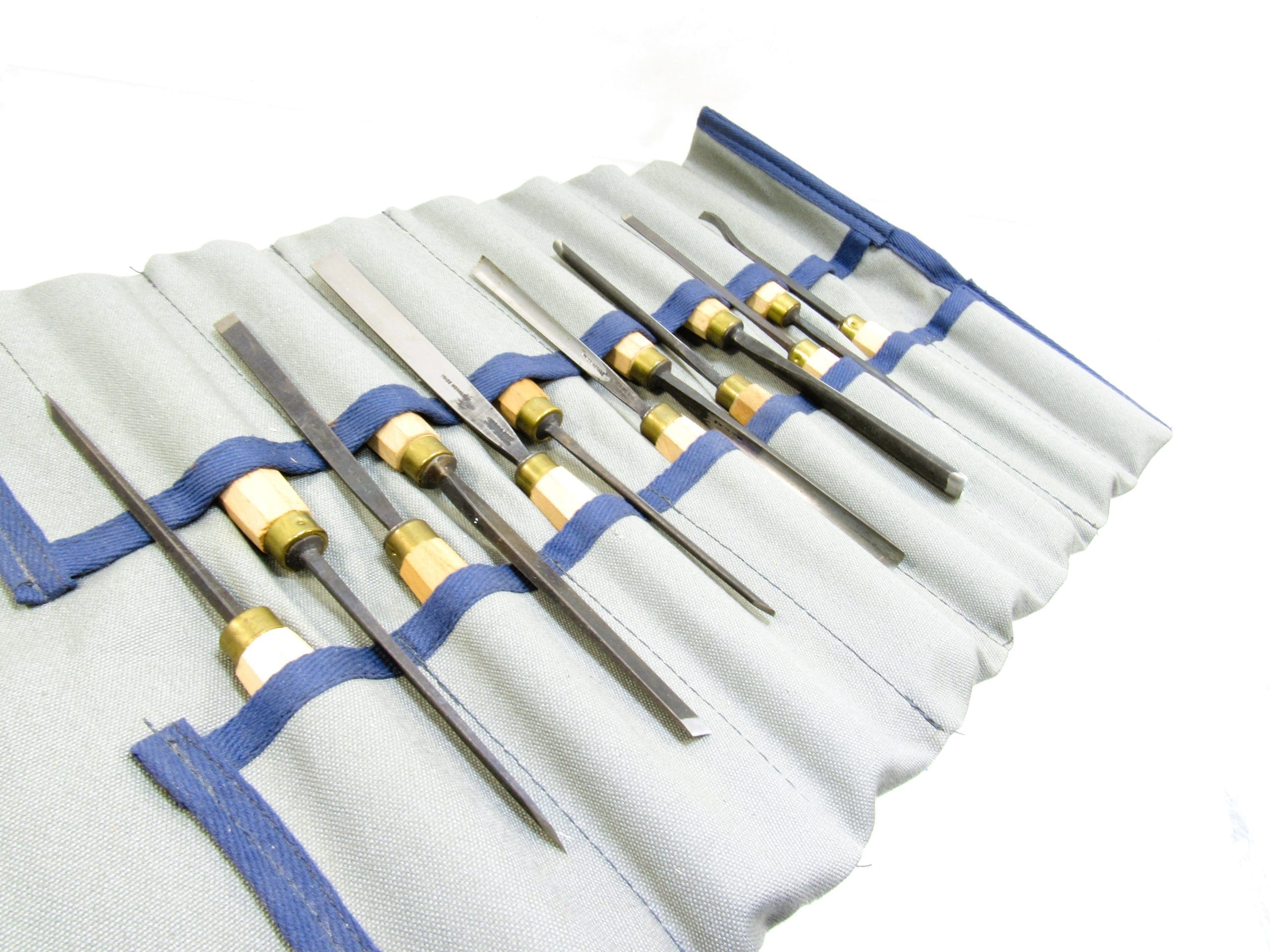 Extra Fine Minty Set Of 13 Herring Brothers Prize Medal England Carving Chisel Set In Canvas Roll