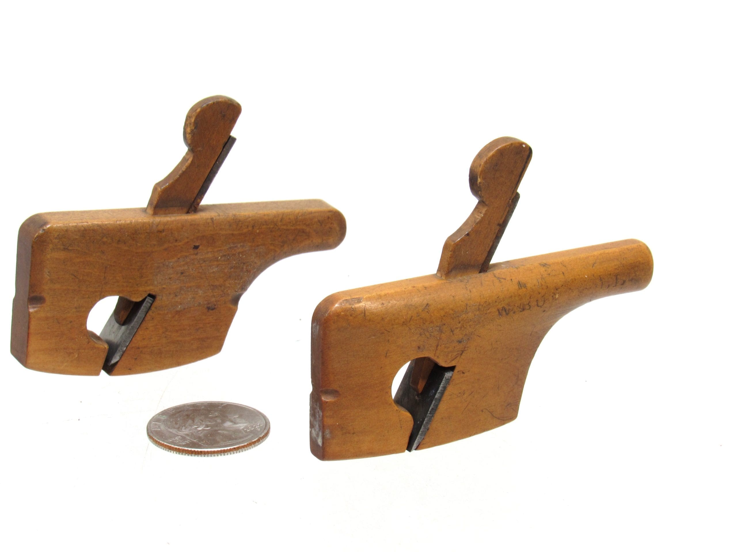 Awesome Pair Of Miniature Boxwood Tail Handled Instrument Makers Plane's 1 3/4" Long Sole.