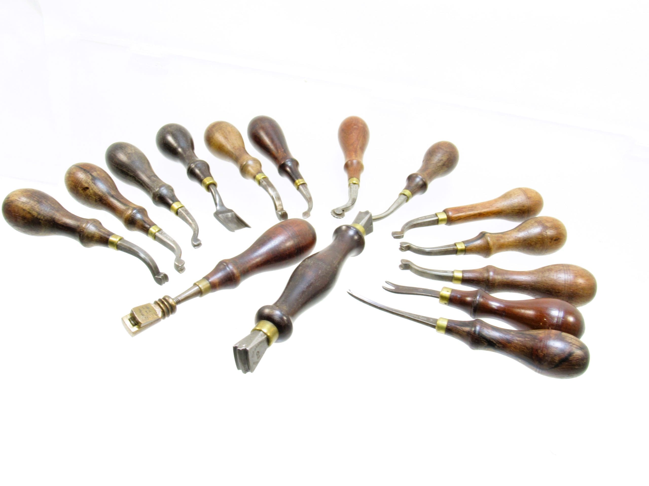 Set Of 15 Osborne & Gomph Leather Working Tools With Rosewood Handle